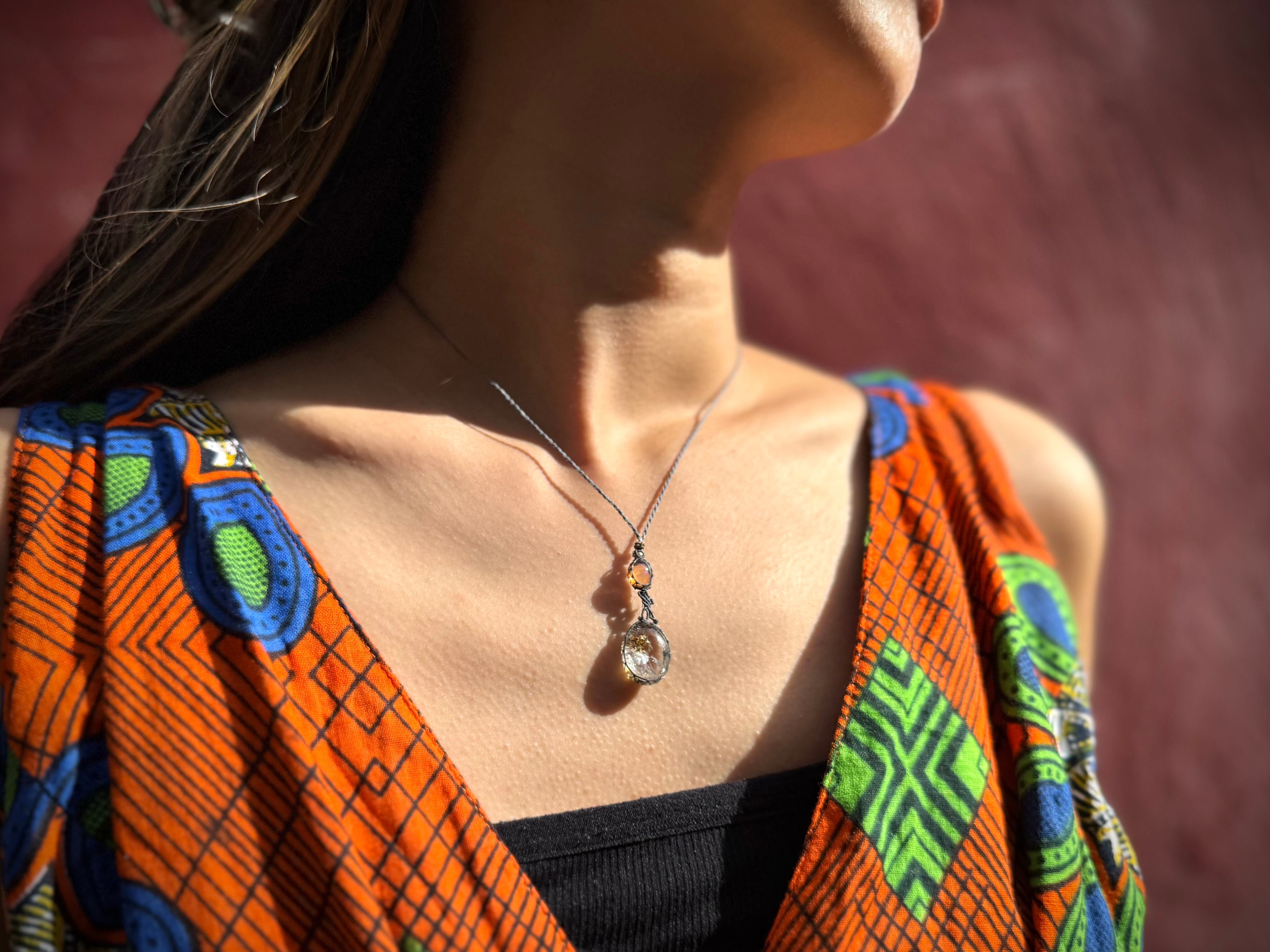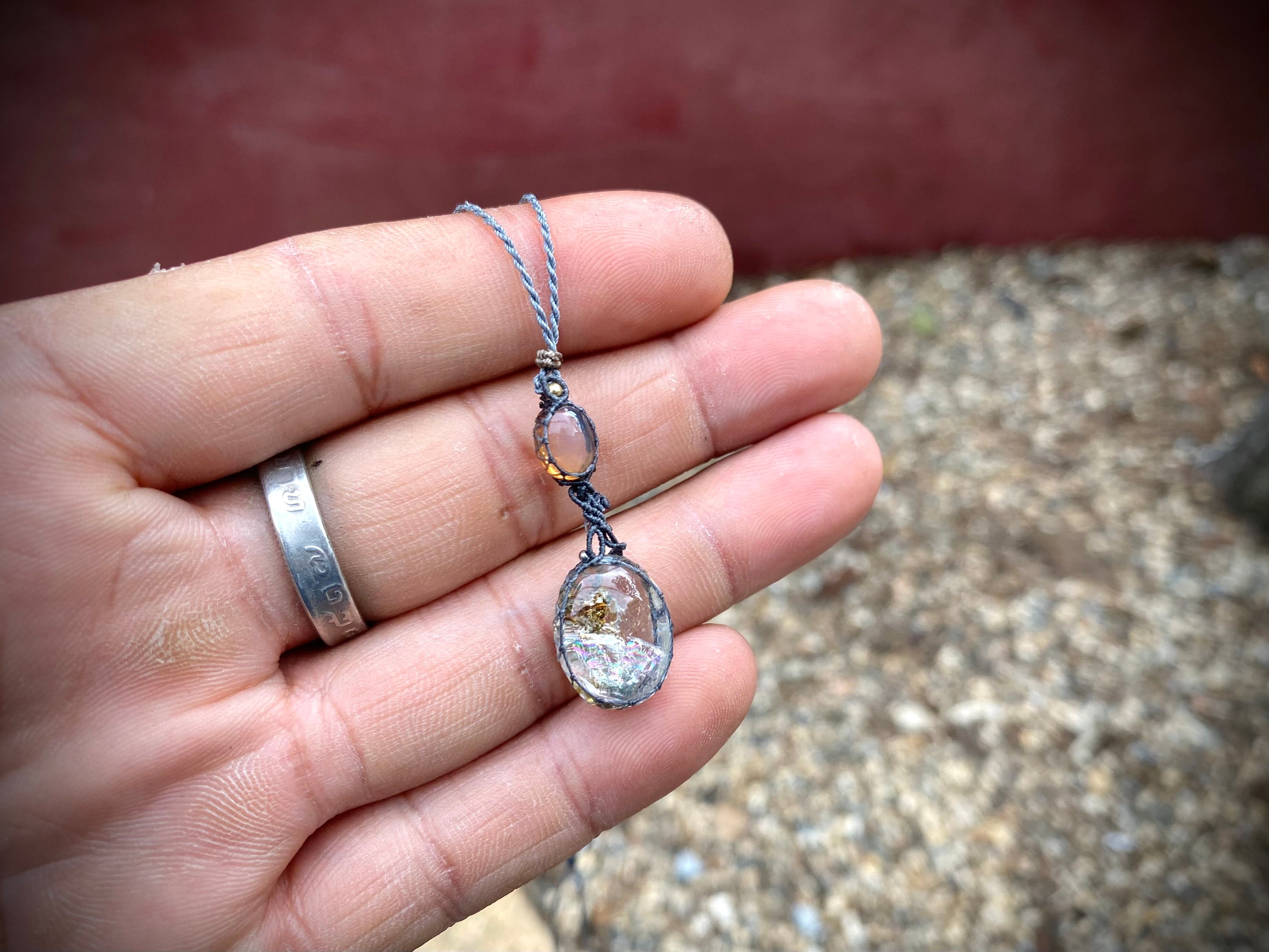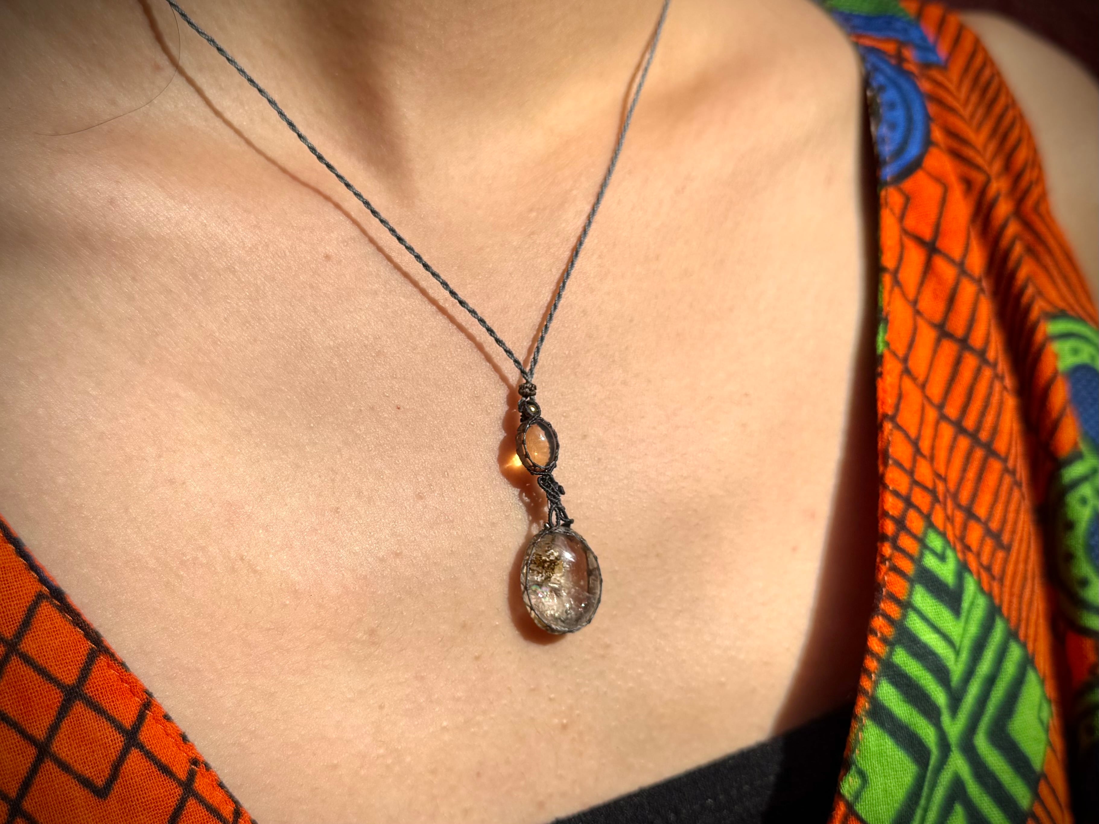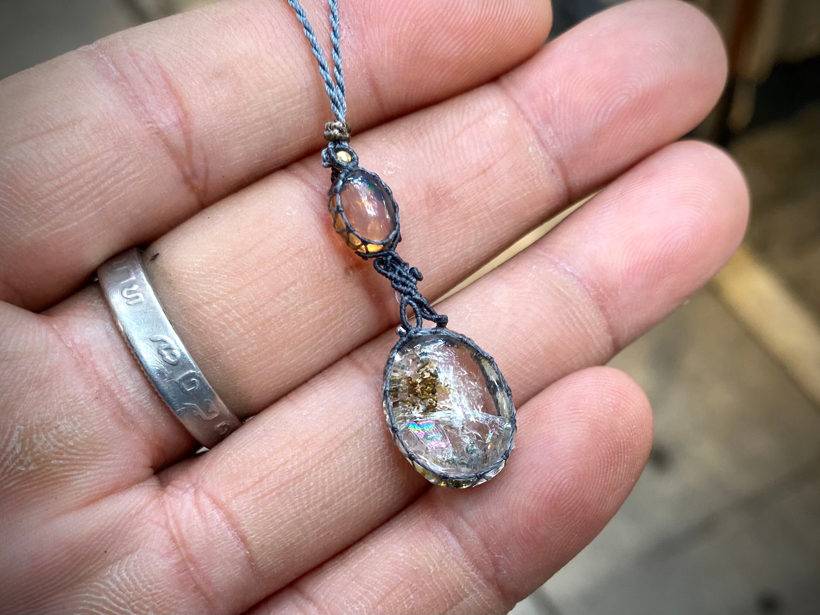 レインボーガーデンクォーツとエチオピア産オパールを使った新作ネックレスです。