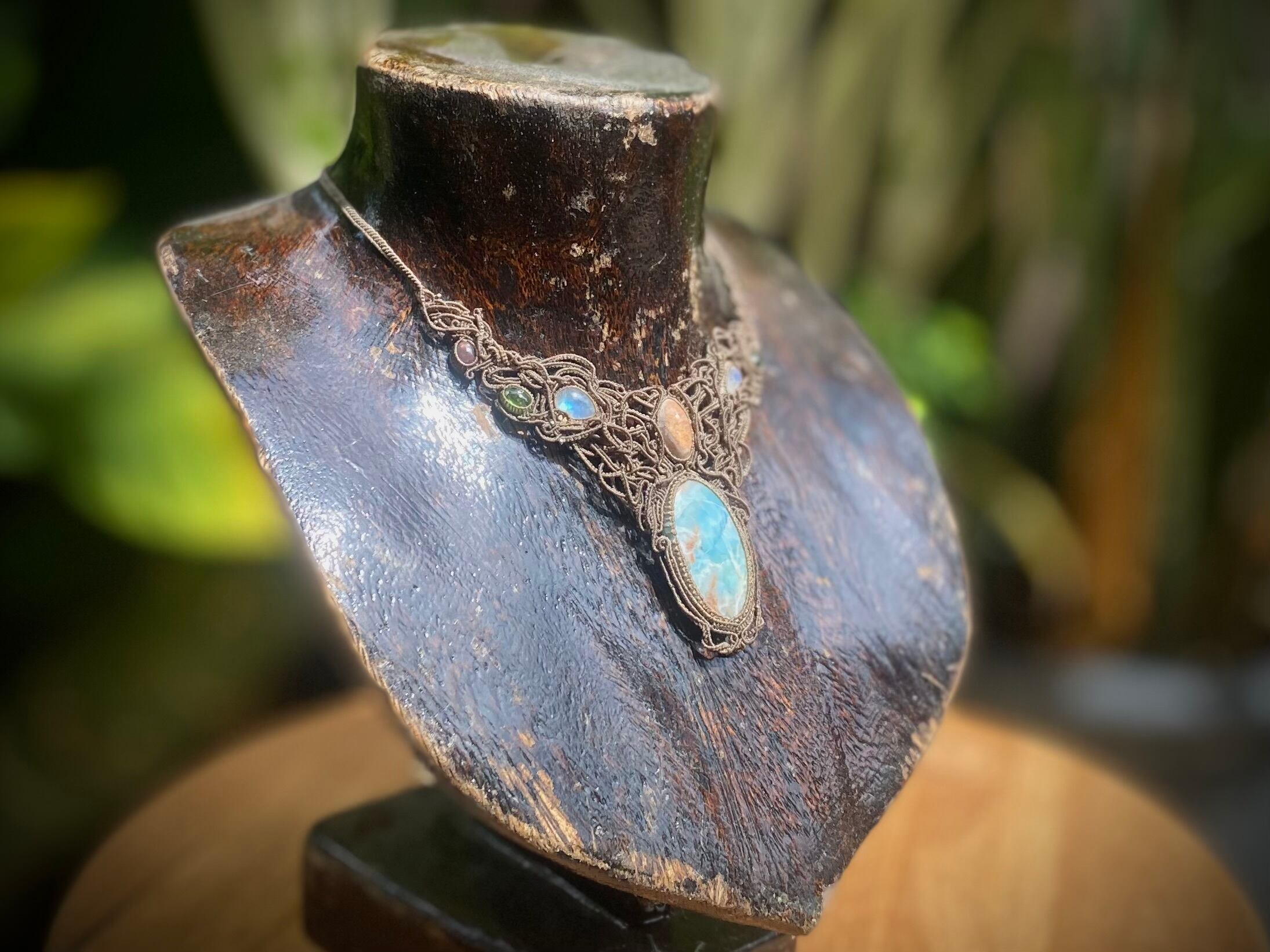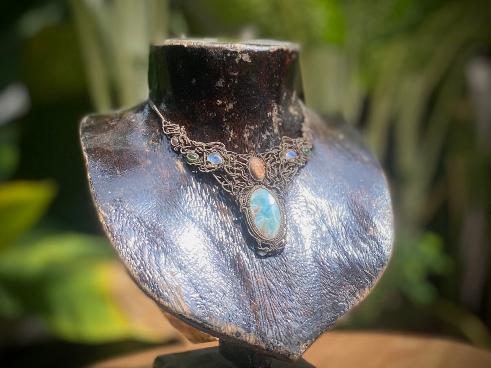 Larimar with Cantera Opal & Moonstone & Tourmaline & Opal choker necklace