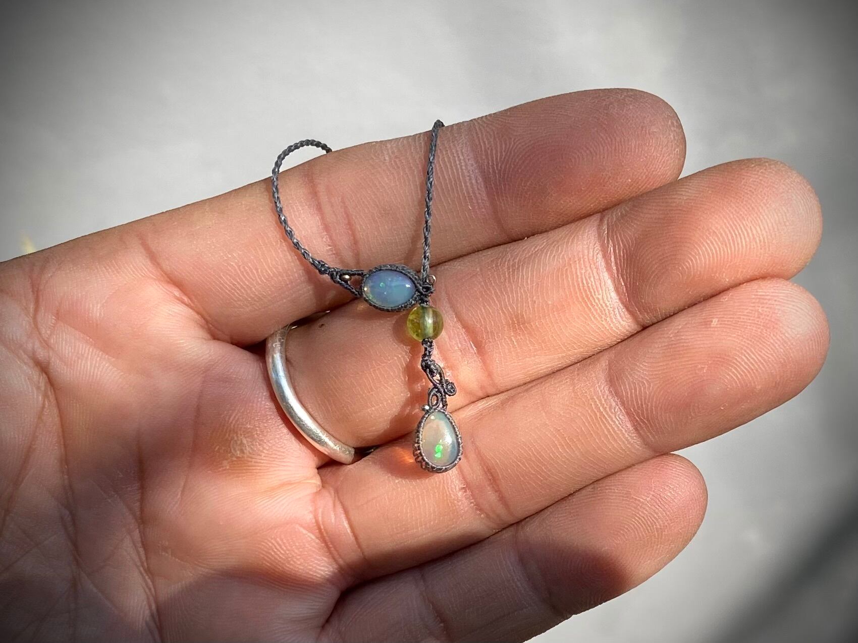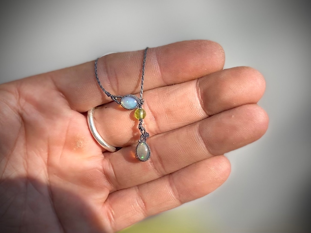 エチオピア産オパール石とブラックオパール石を使った新作ネックレスです