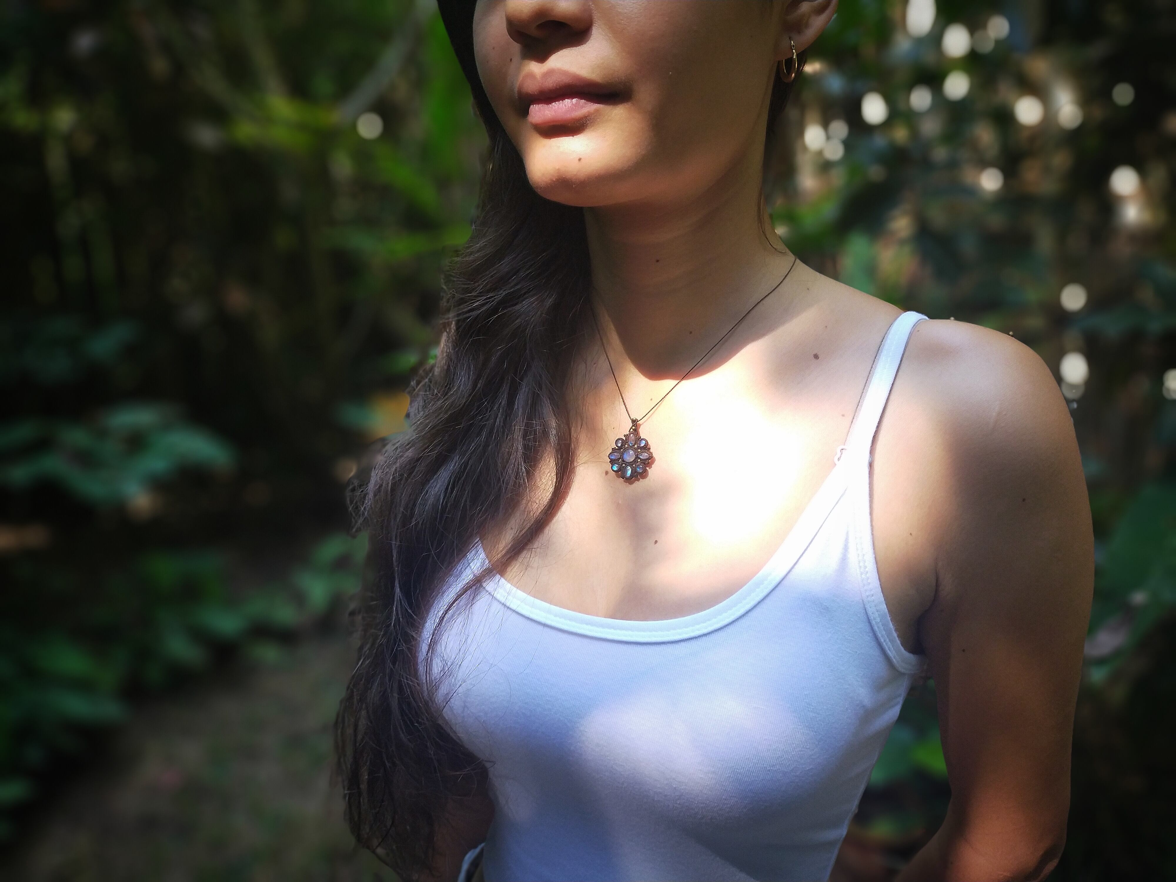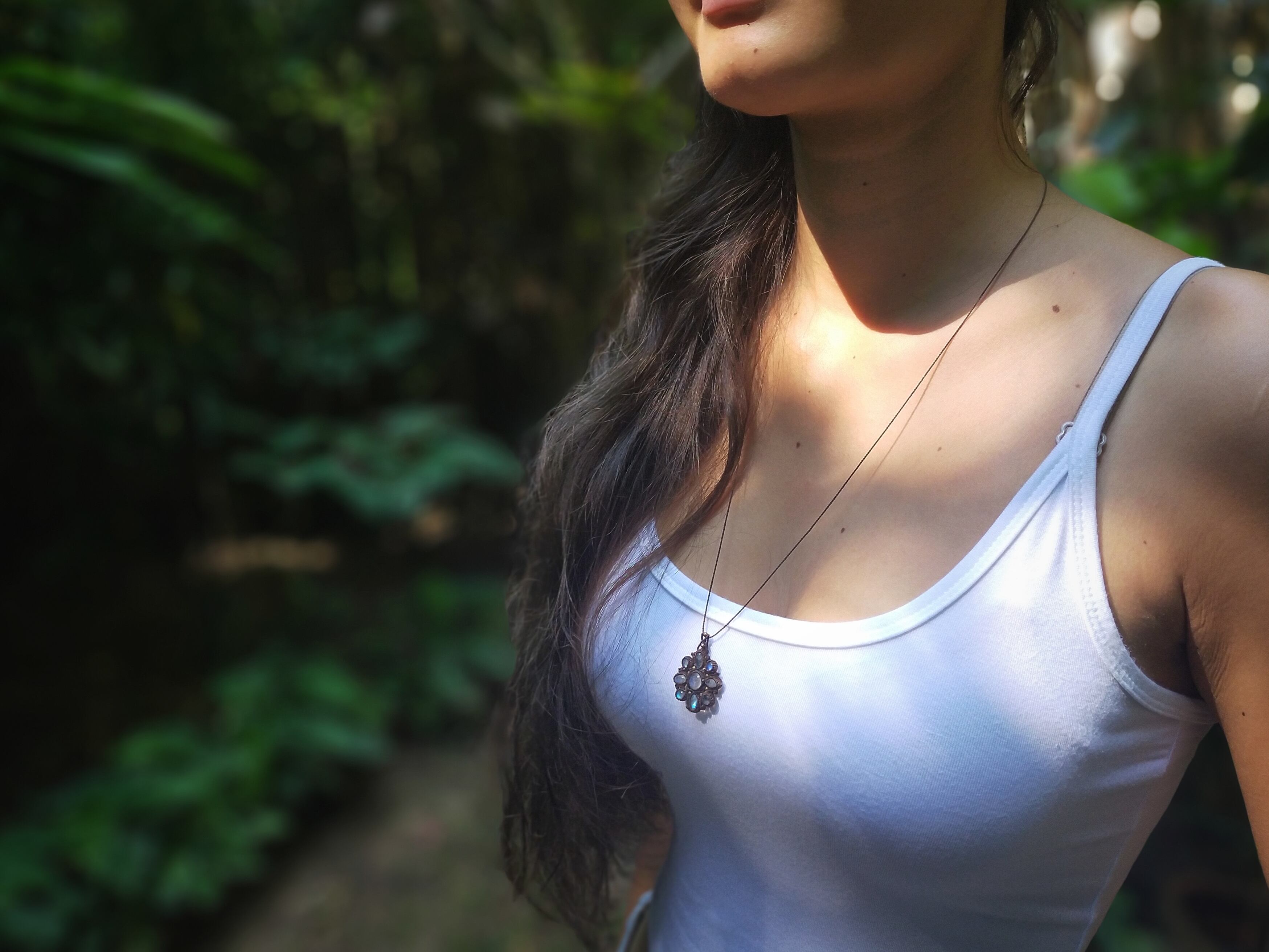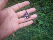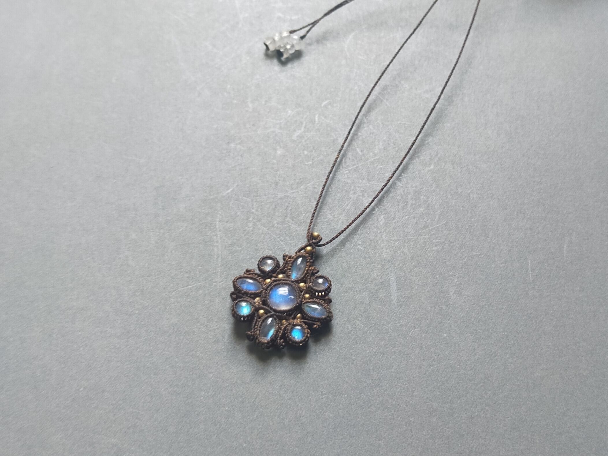 ☆0.20mmのワックスコードを2つにさいて使用していますので、一本あたり超極細の0.10mmになっております。紐部分は、4つ編みで編んでおります。
