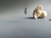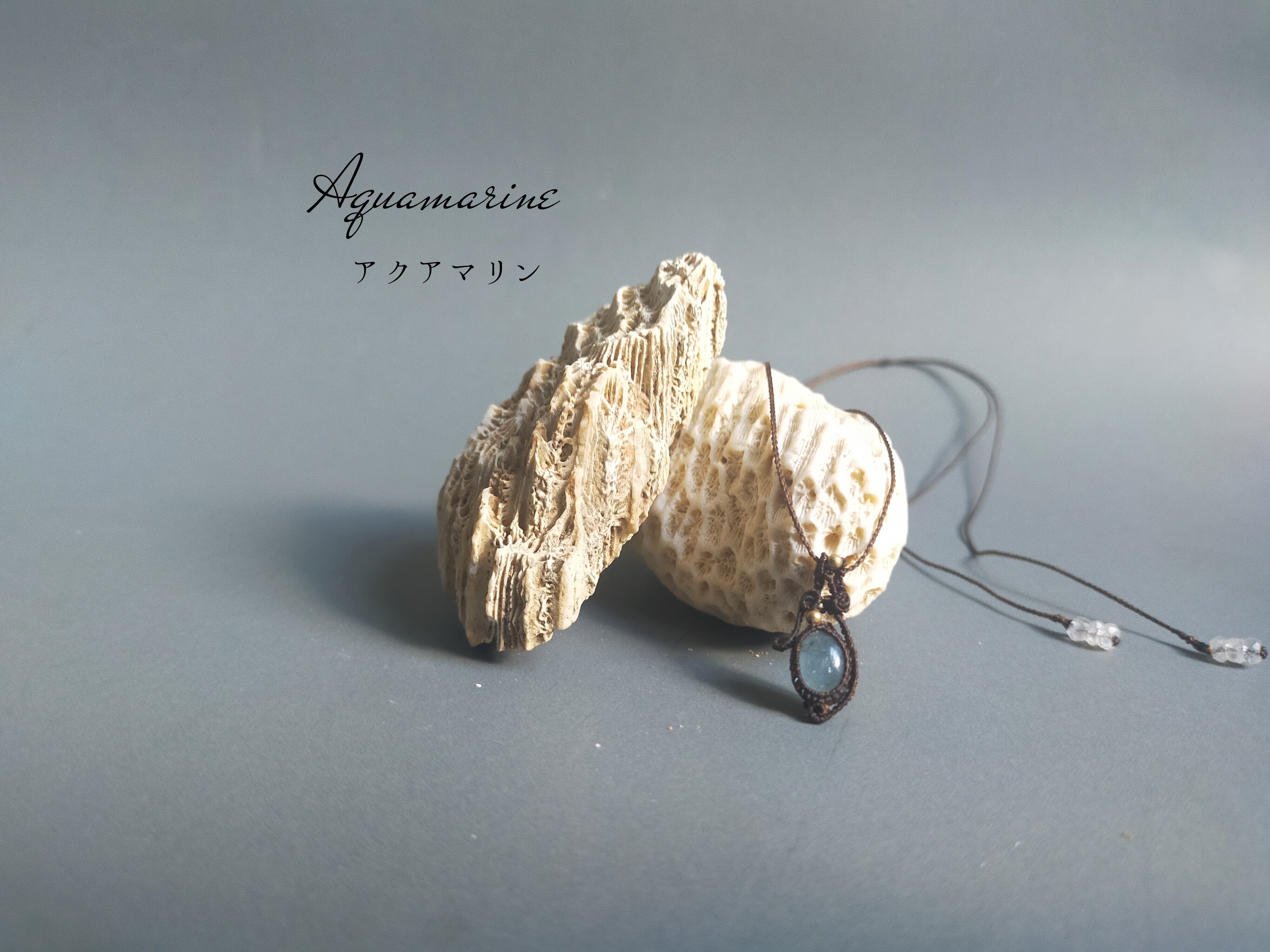 アクアマリンを使用して、音符をイメージして作りました。極限まで細い0.10mm糸を使用し、アシンメトリーで繊細かつ上品な仕上がりになっております。