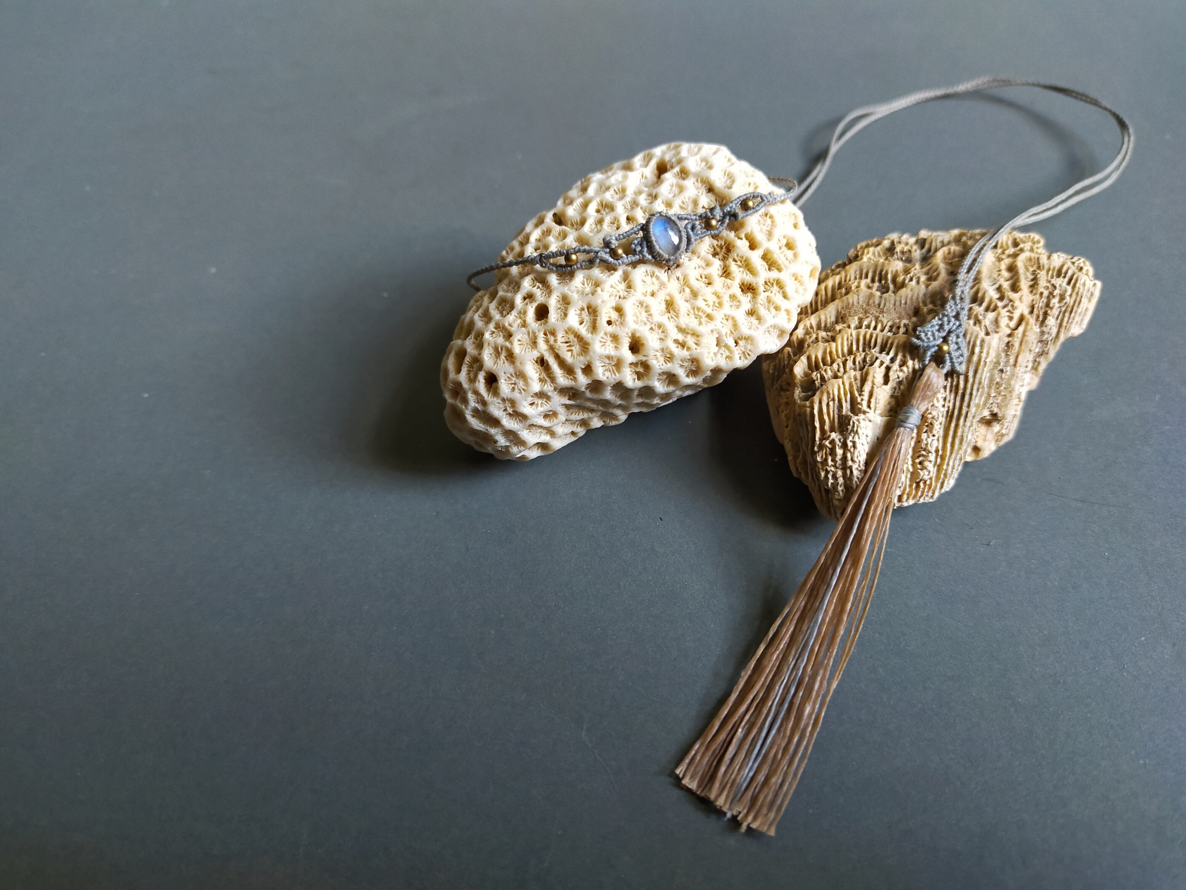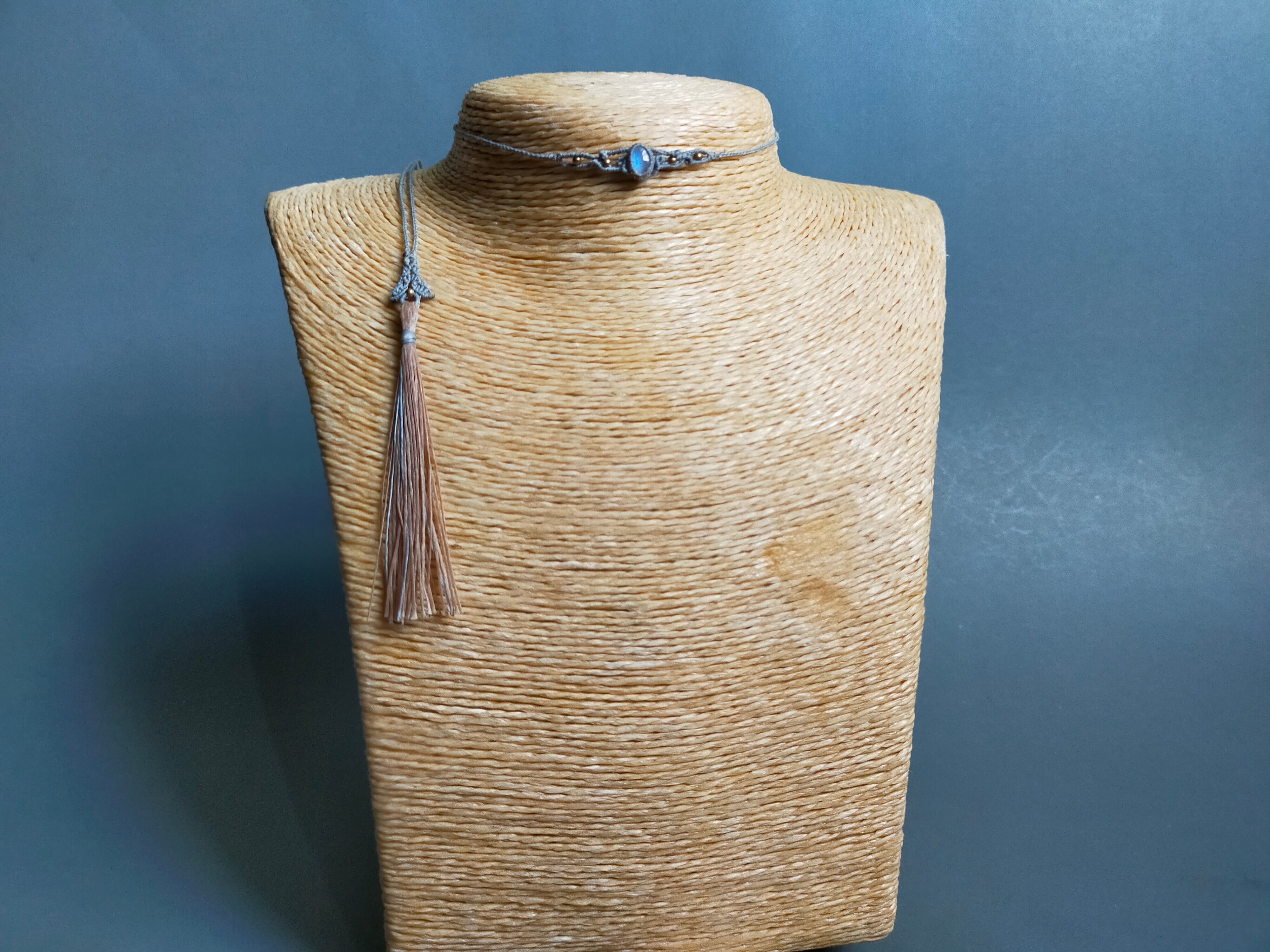 小さなレインボームーンストーンを使用したチョーカー作品出来ました。ワックスコードは0.20mm糸を使用し、繊細で上品な仕上がりになっております。