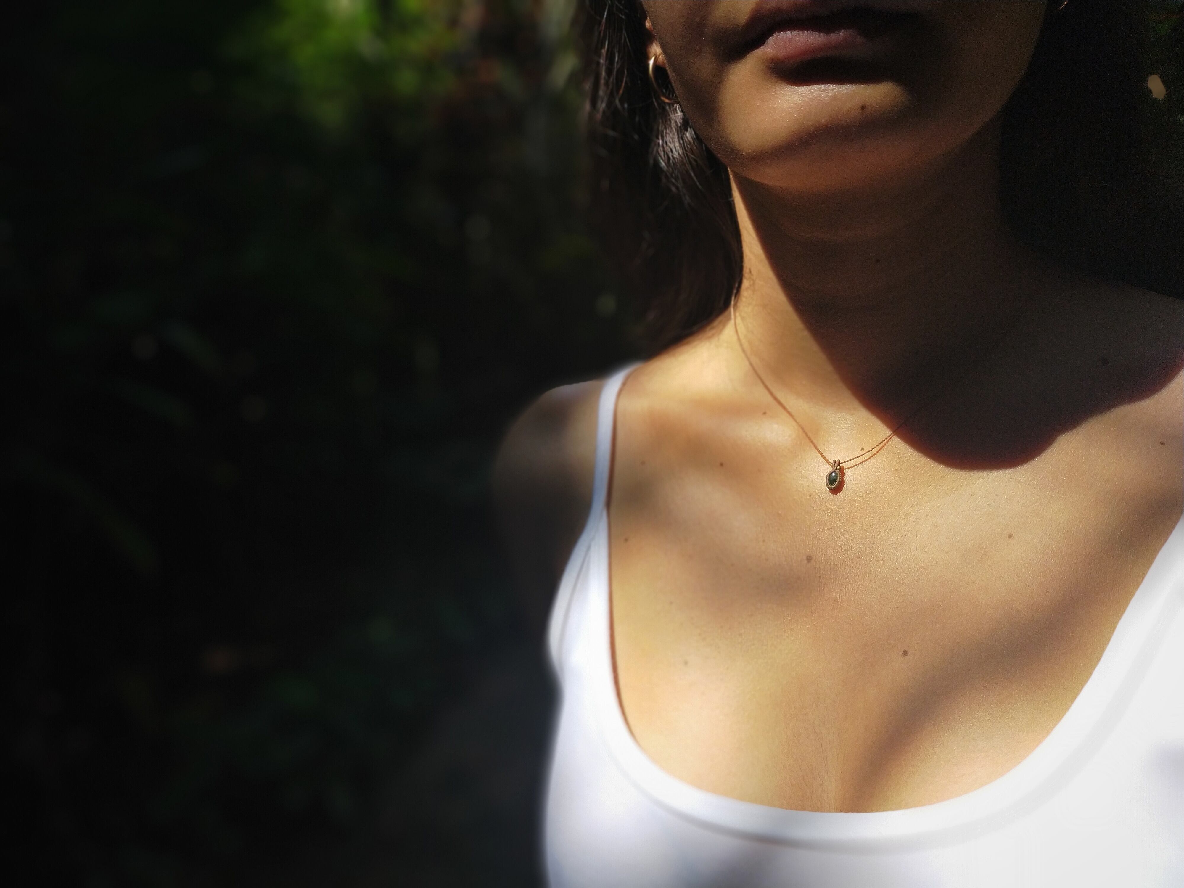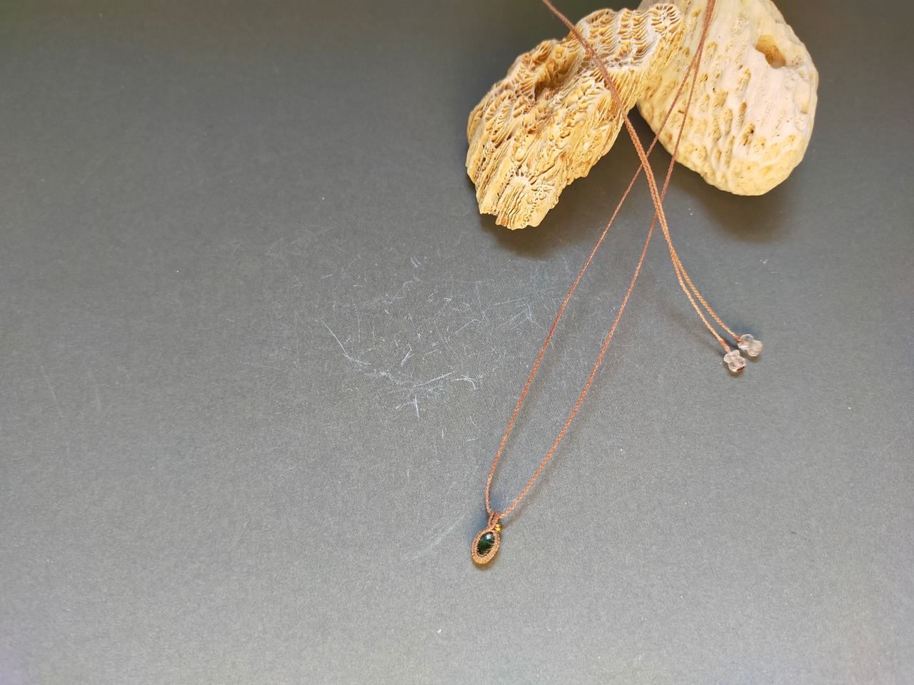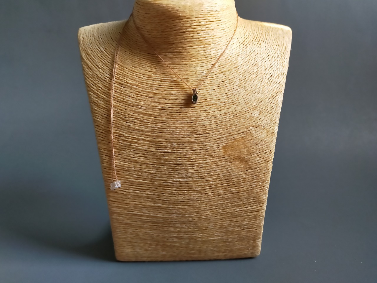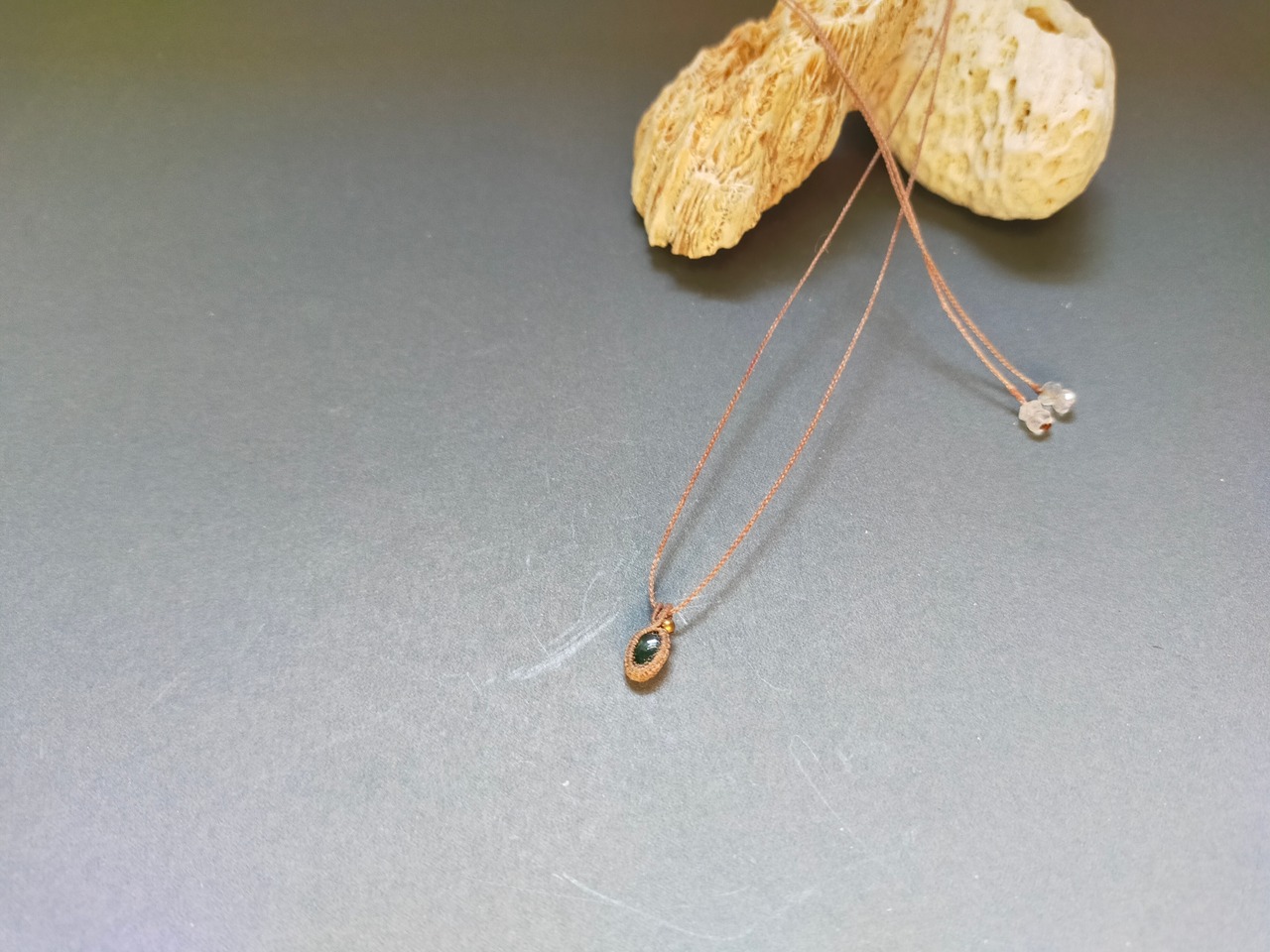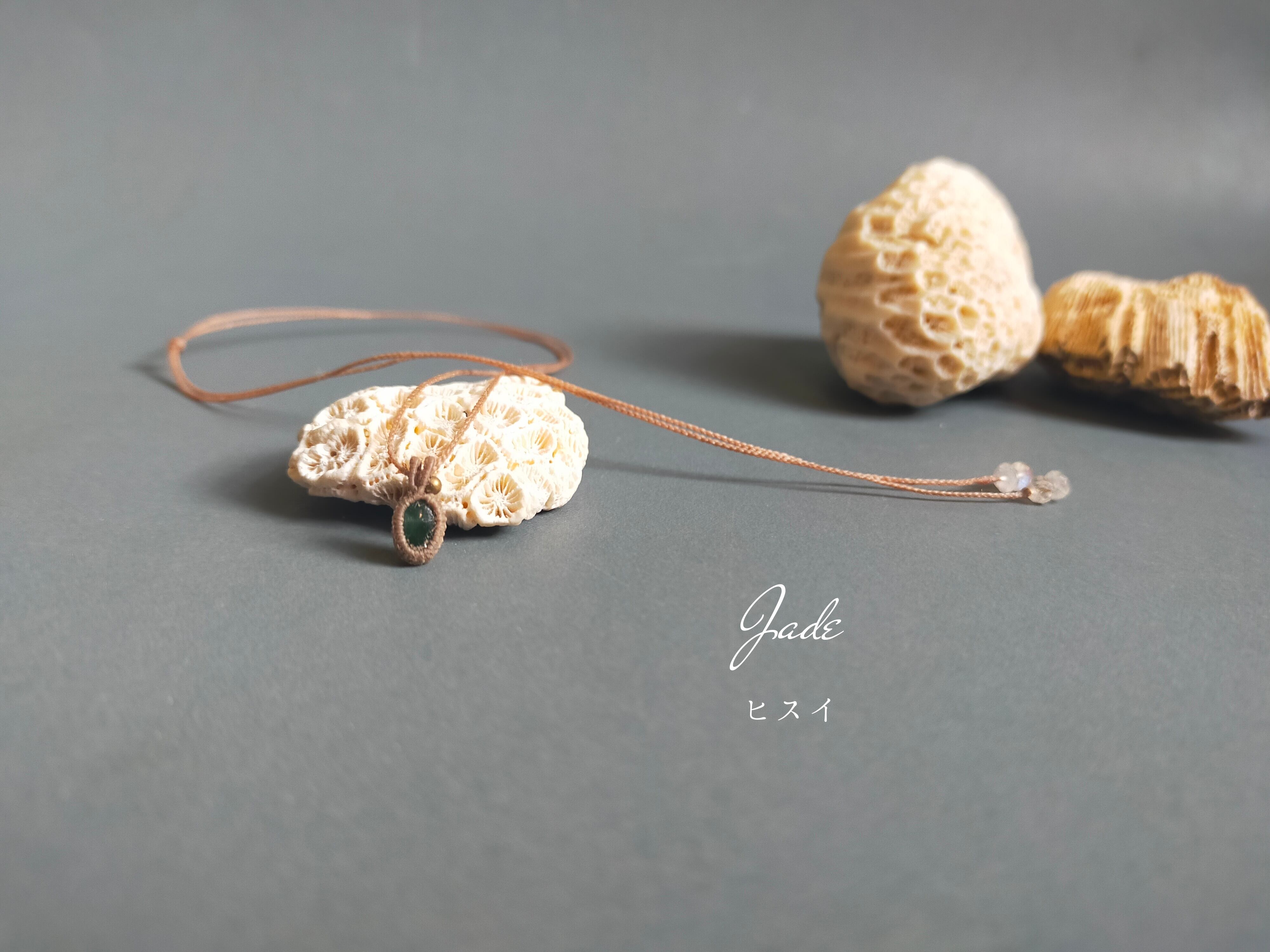 極限まで細い0.10mm糸を使用し繊細で上品な仕上がりになっております。小さなヒスイ石のシンプルな仕上がりになっていますので、どのものにも合わせやすい商品をなってます。