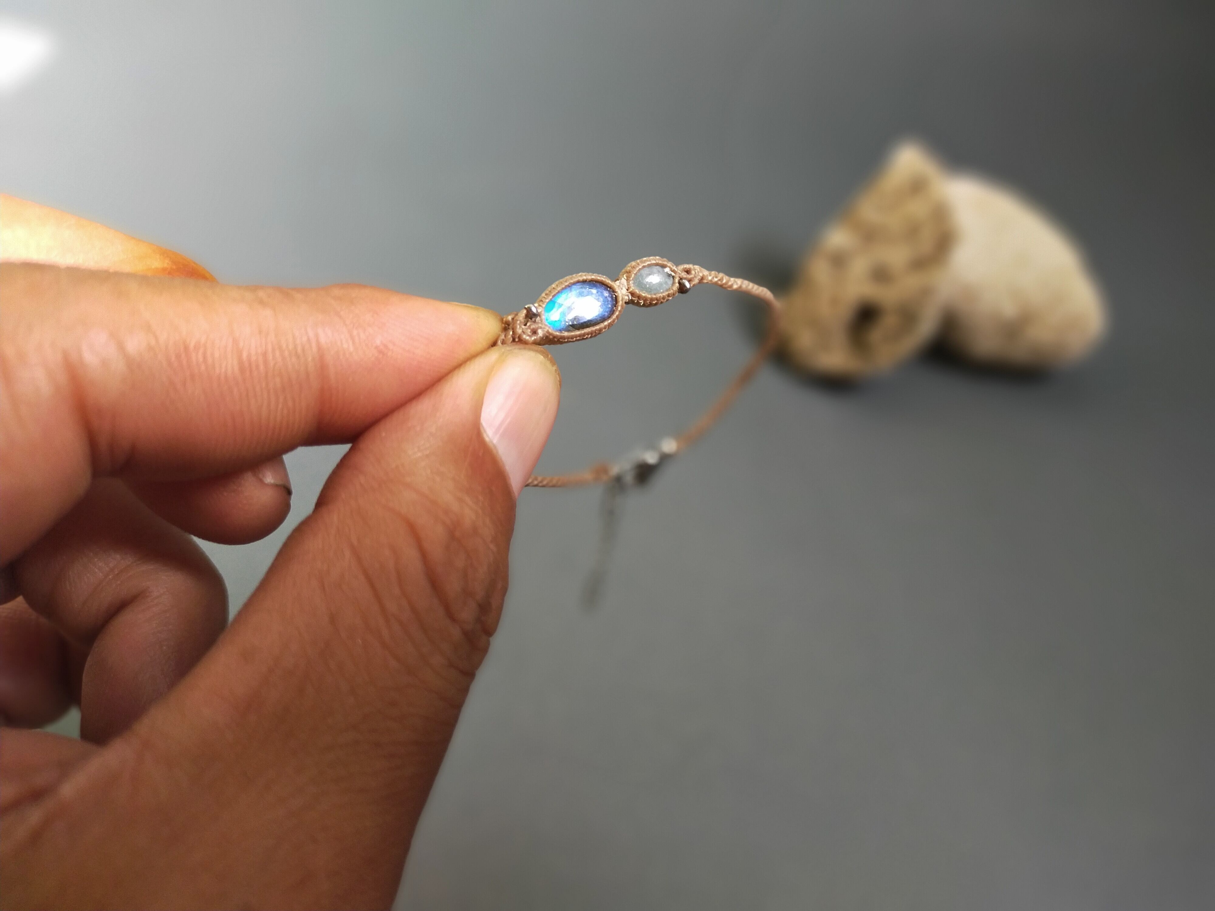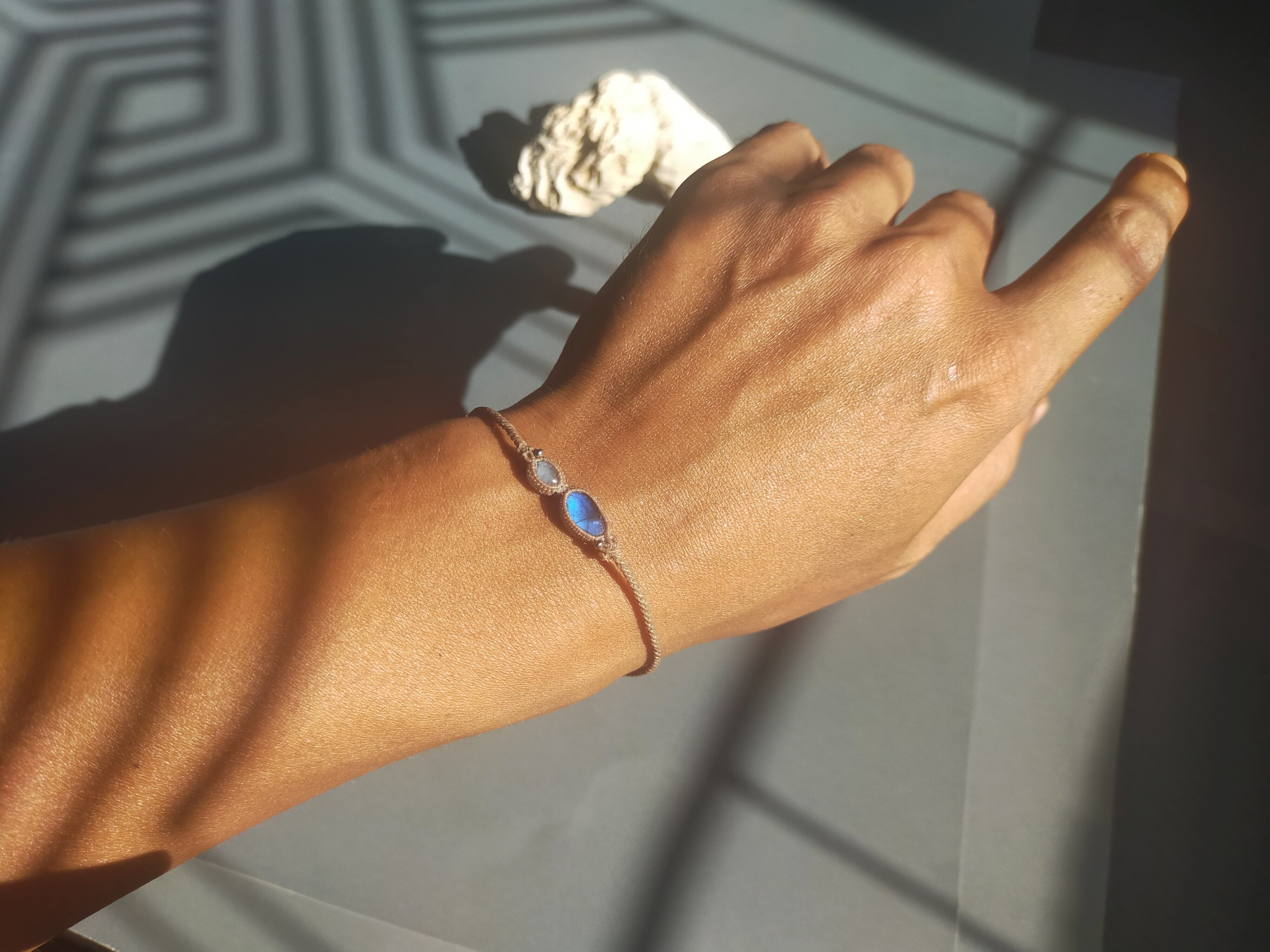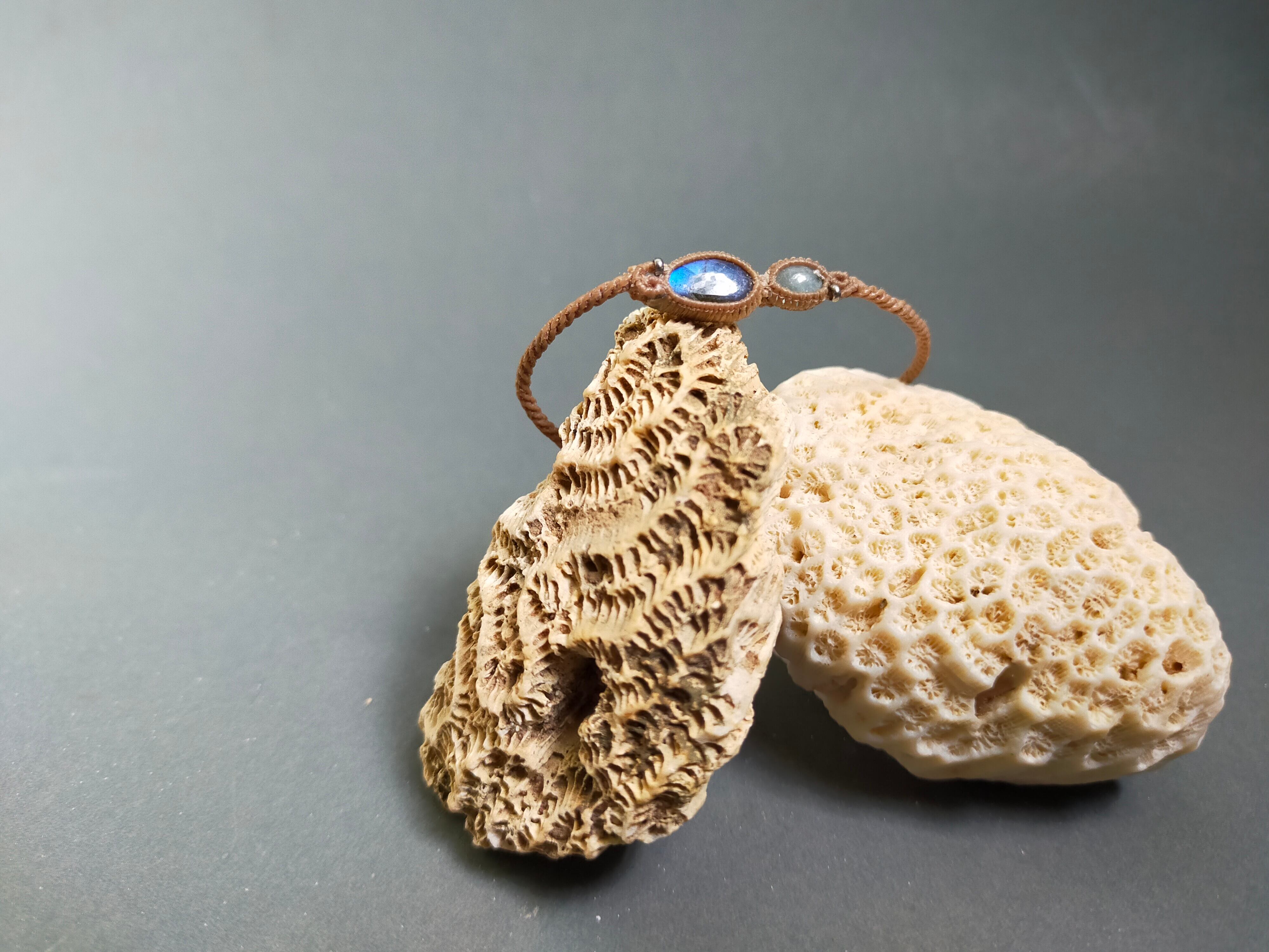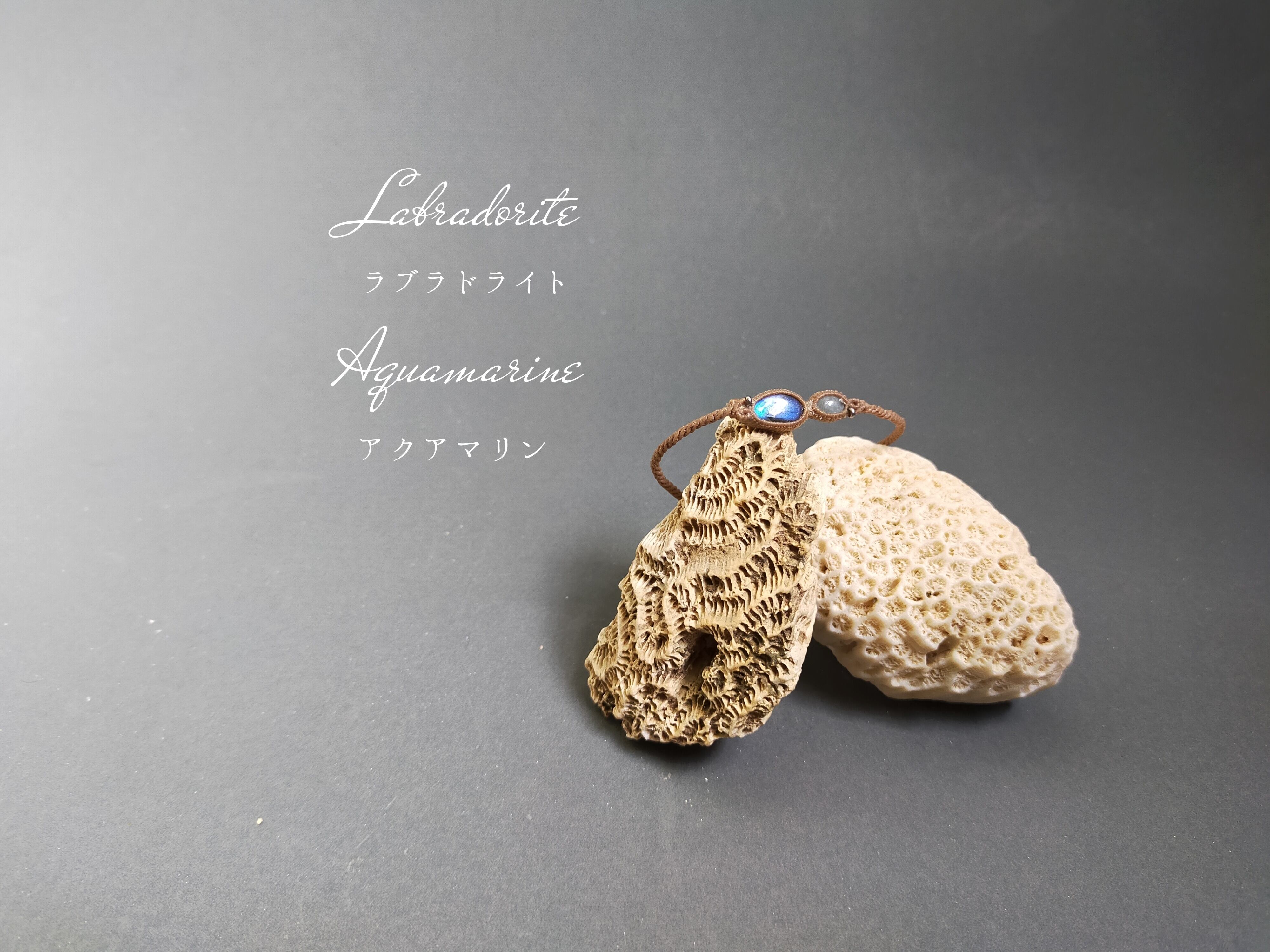 新作ラブラドライトとアクアマリンのブレスレット