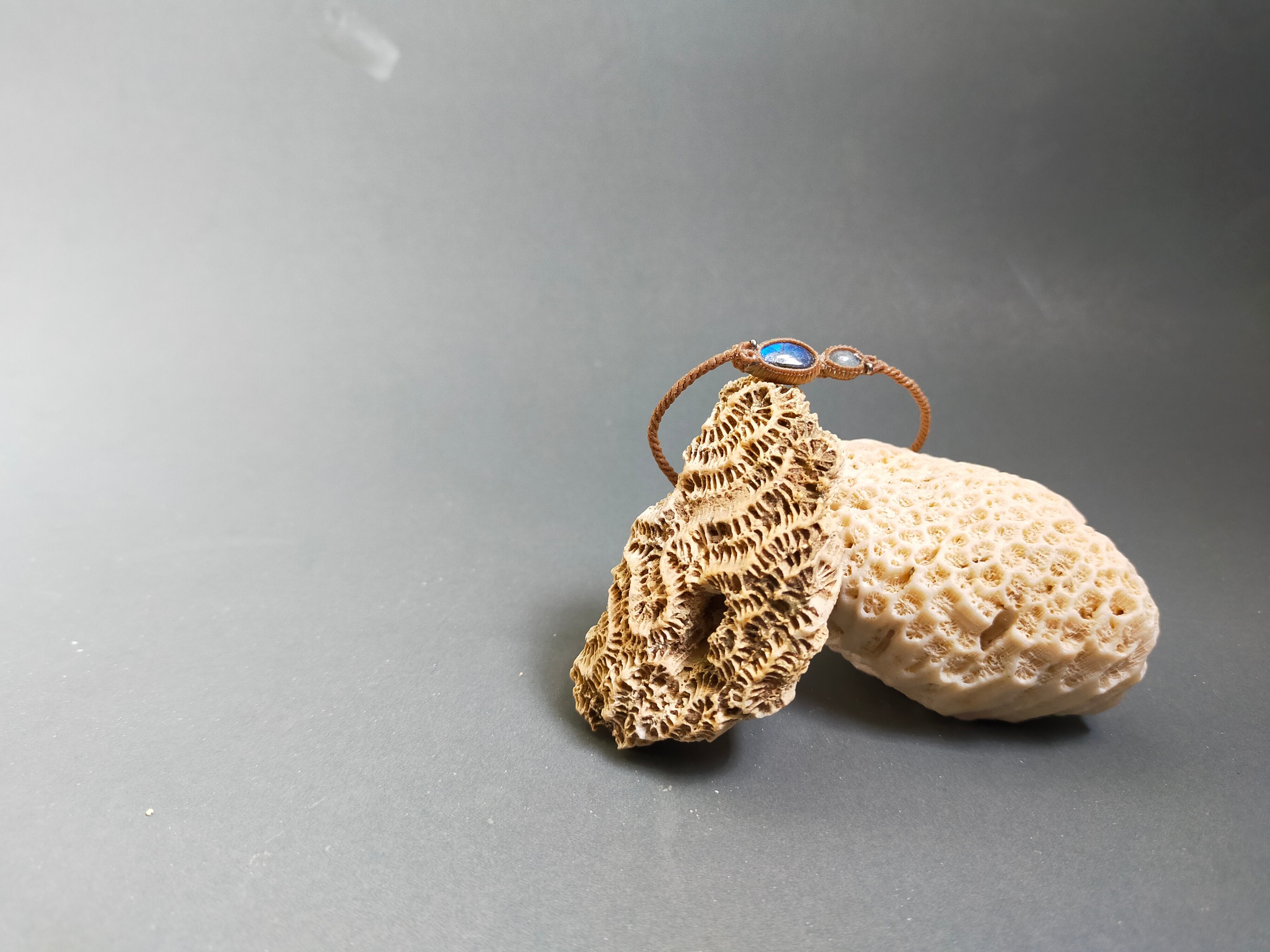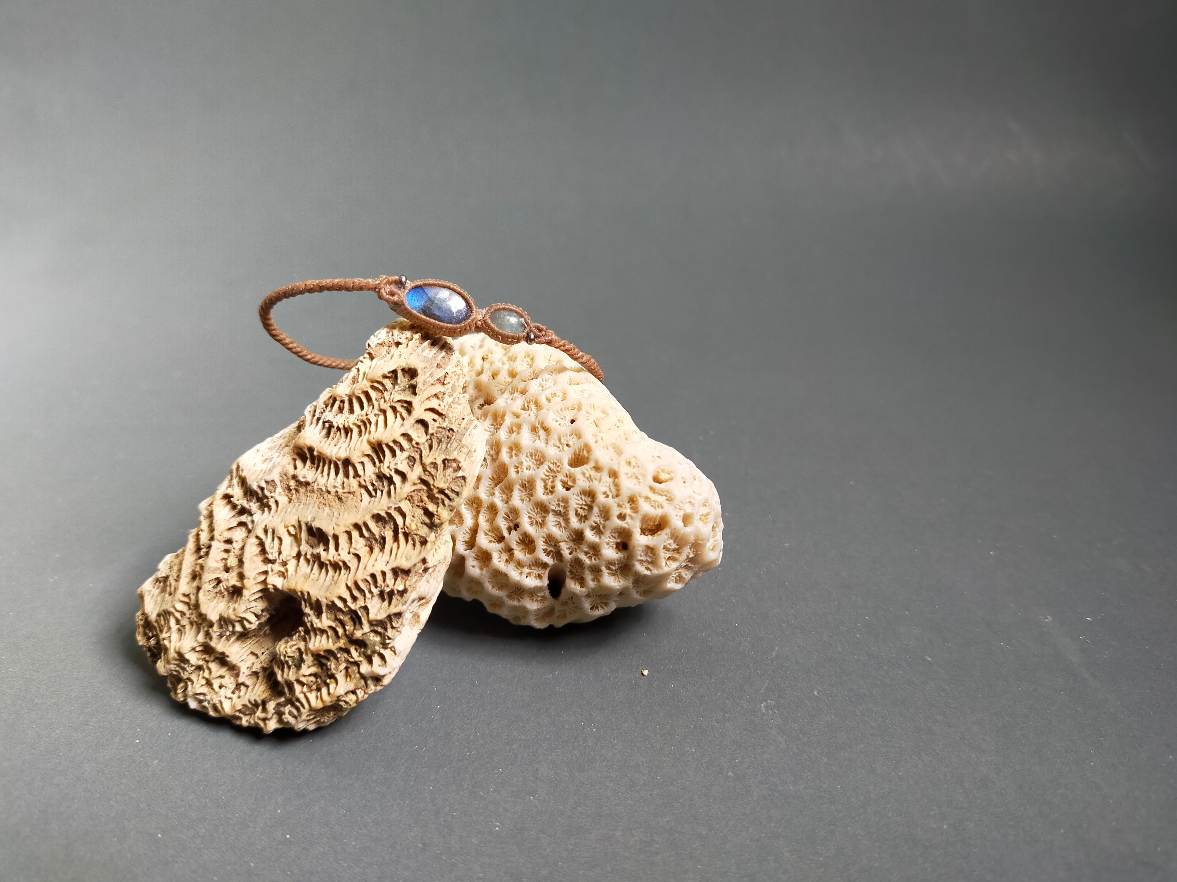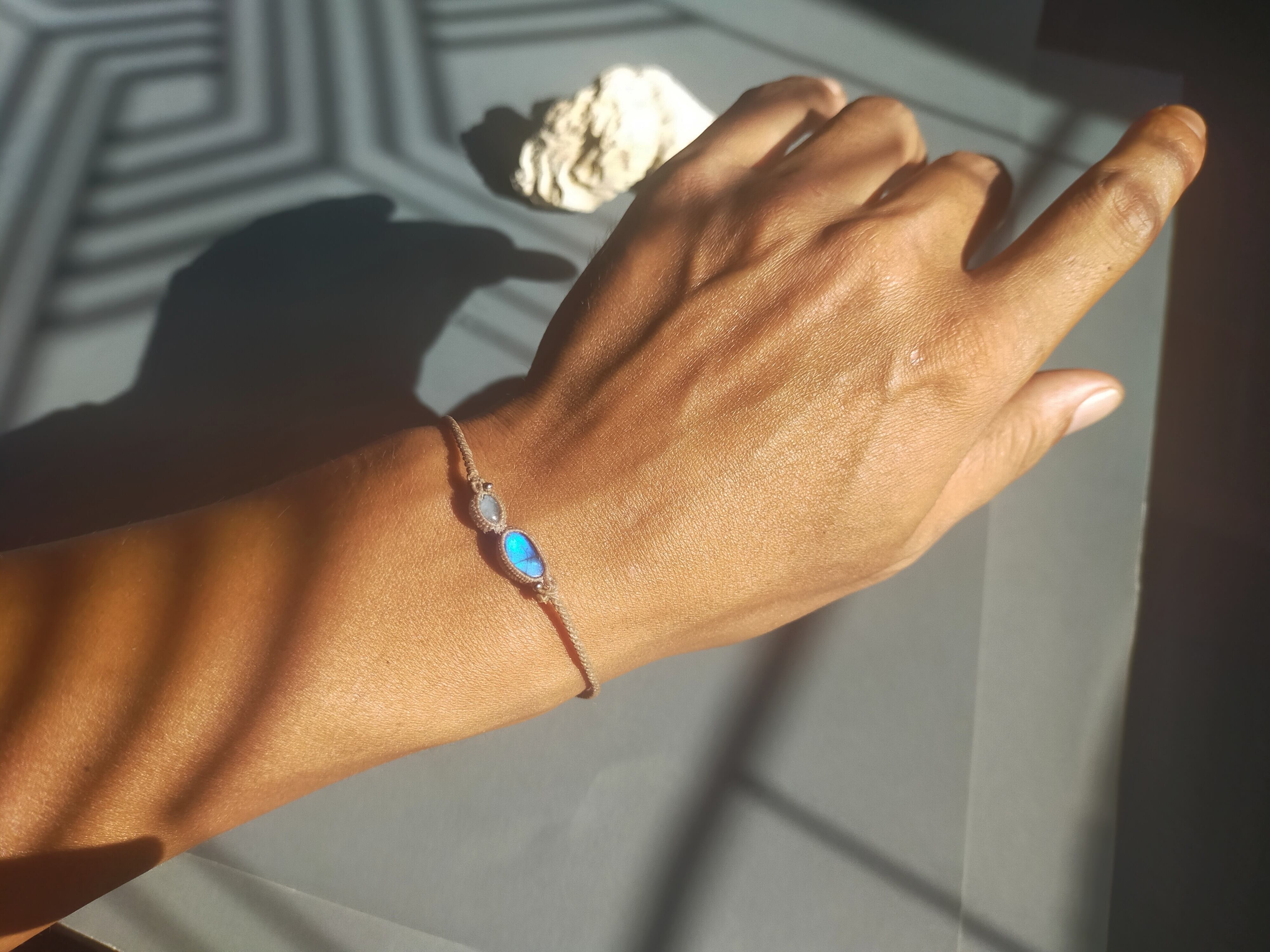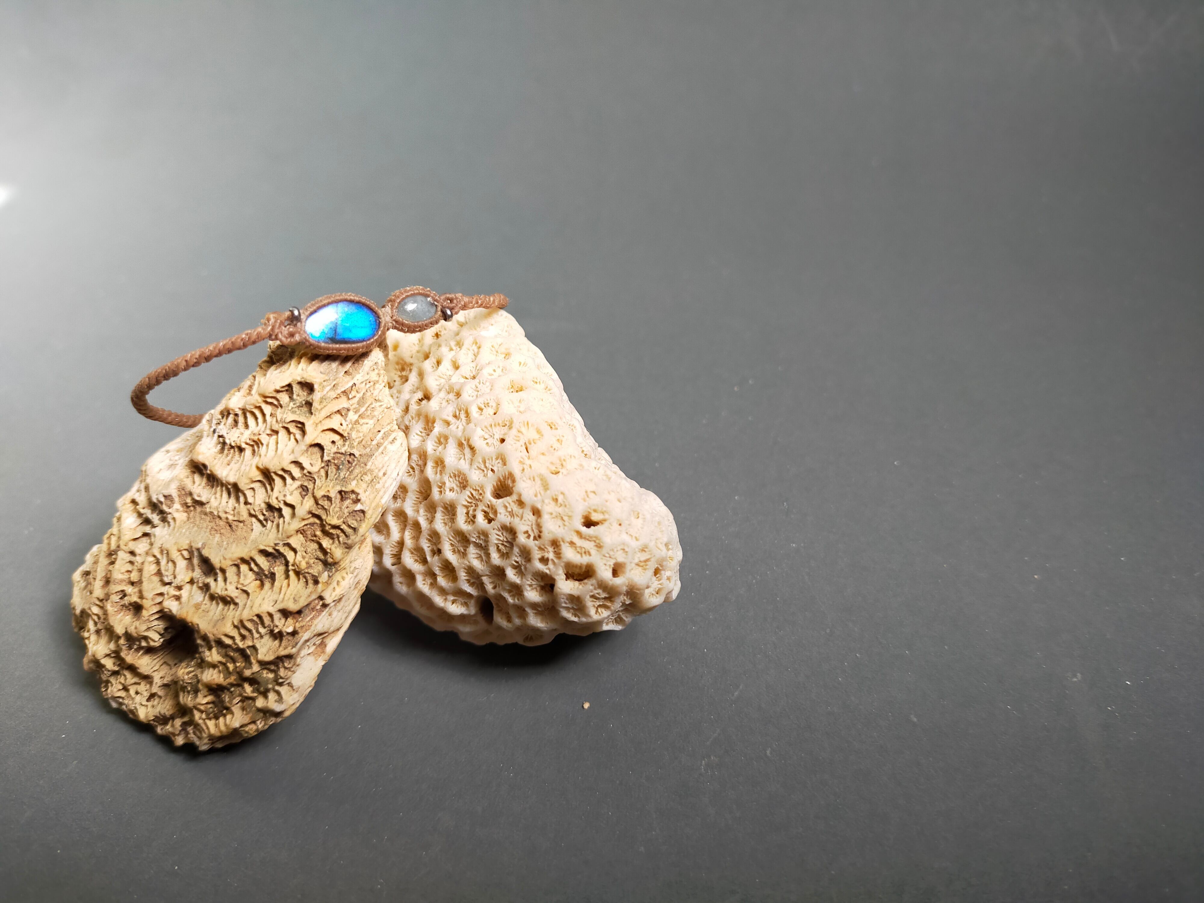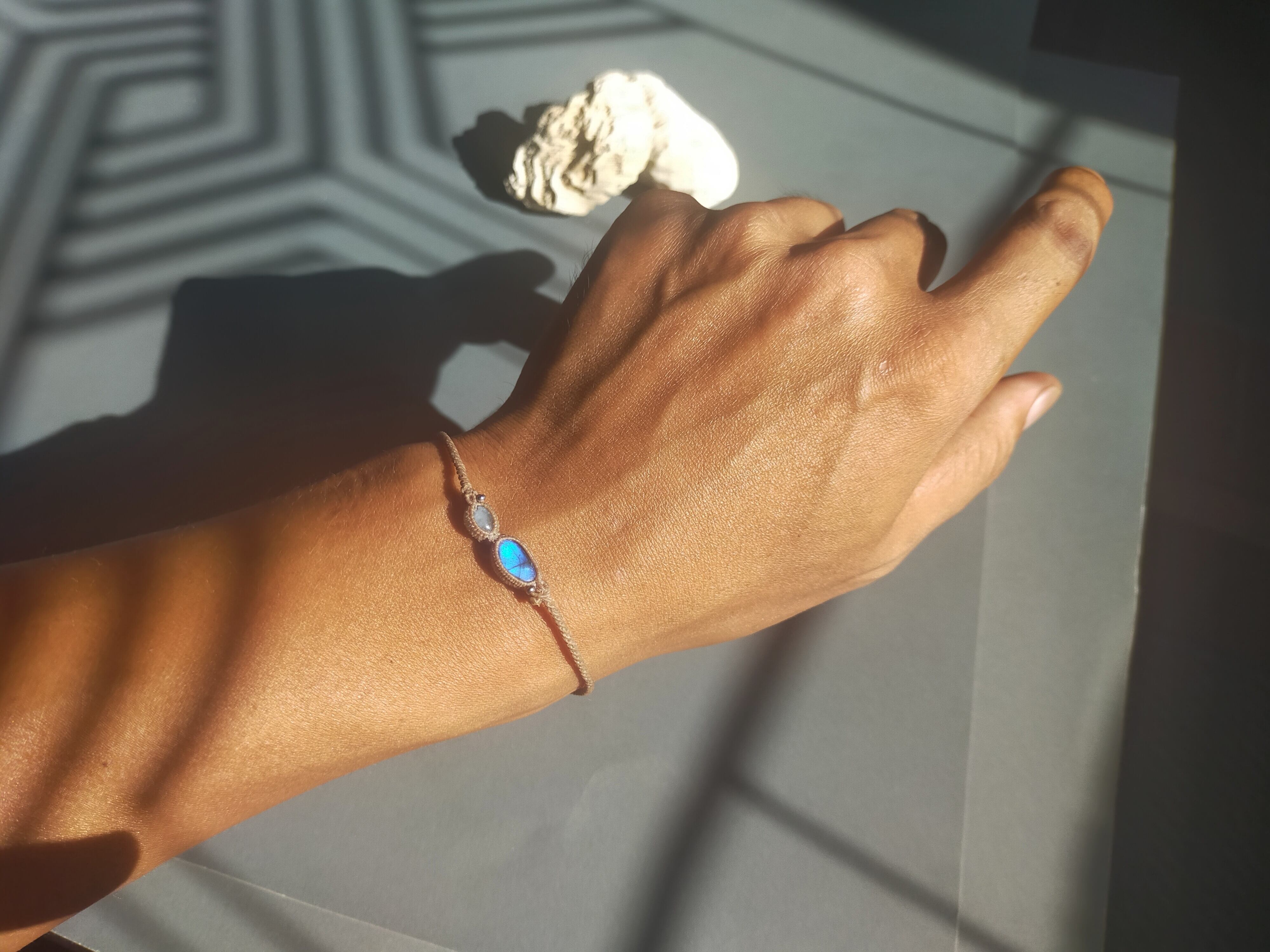 新作ラブラドライトとアクアマリンのブレスレット