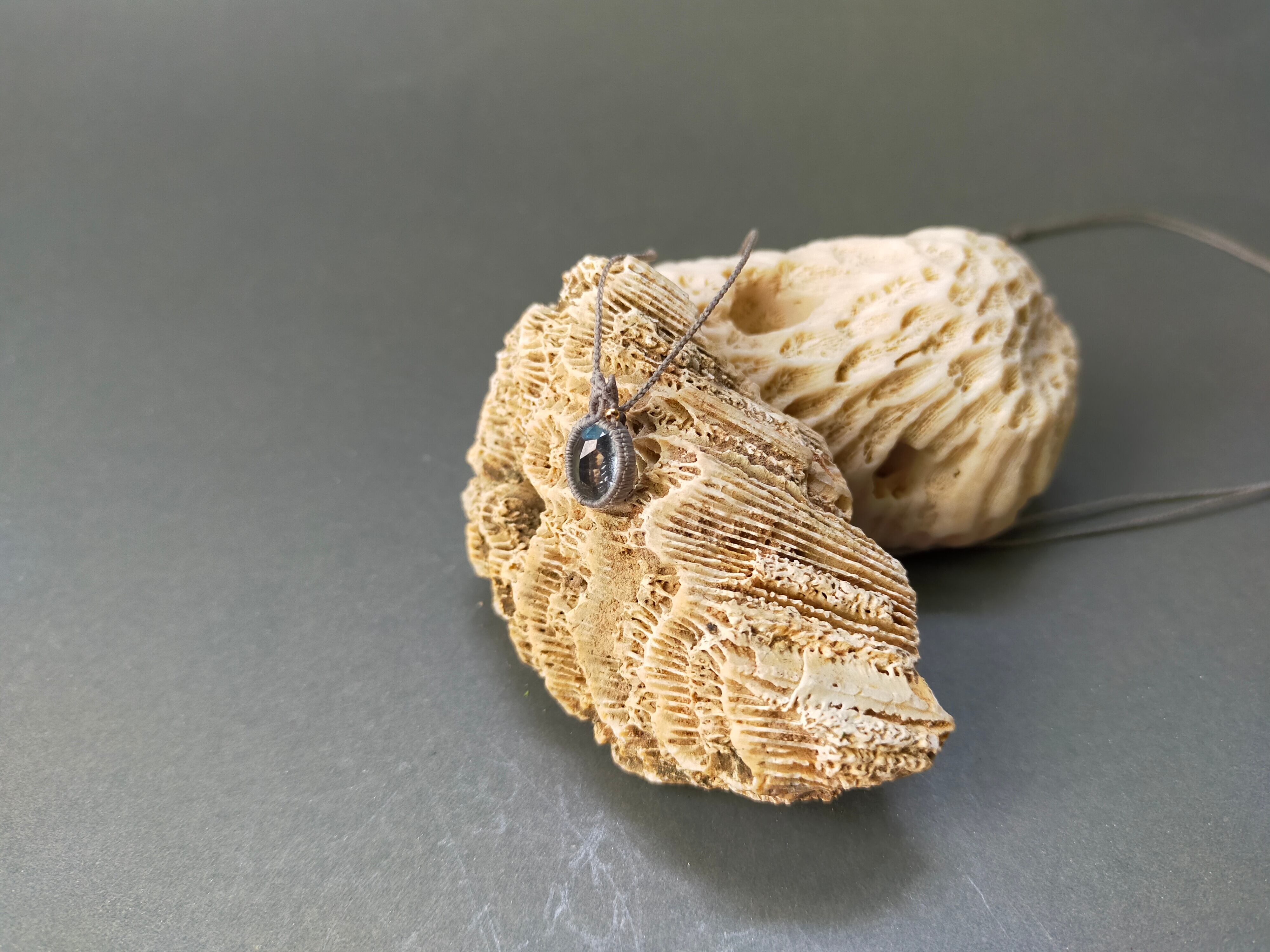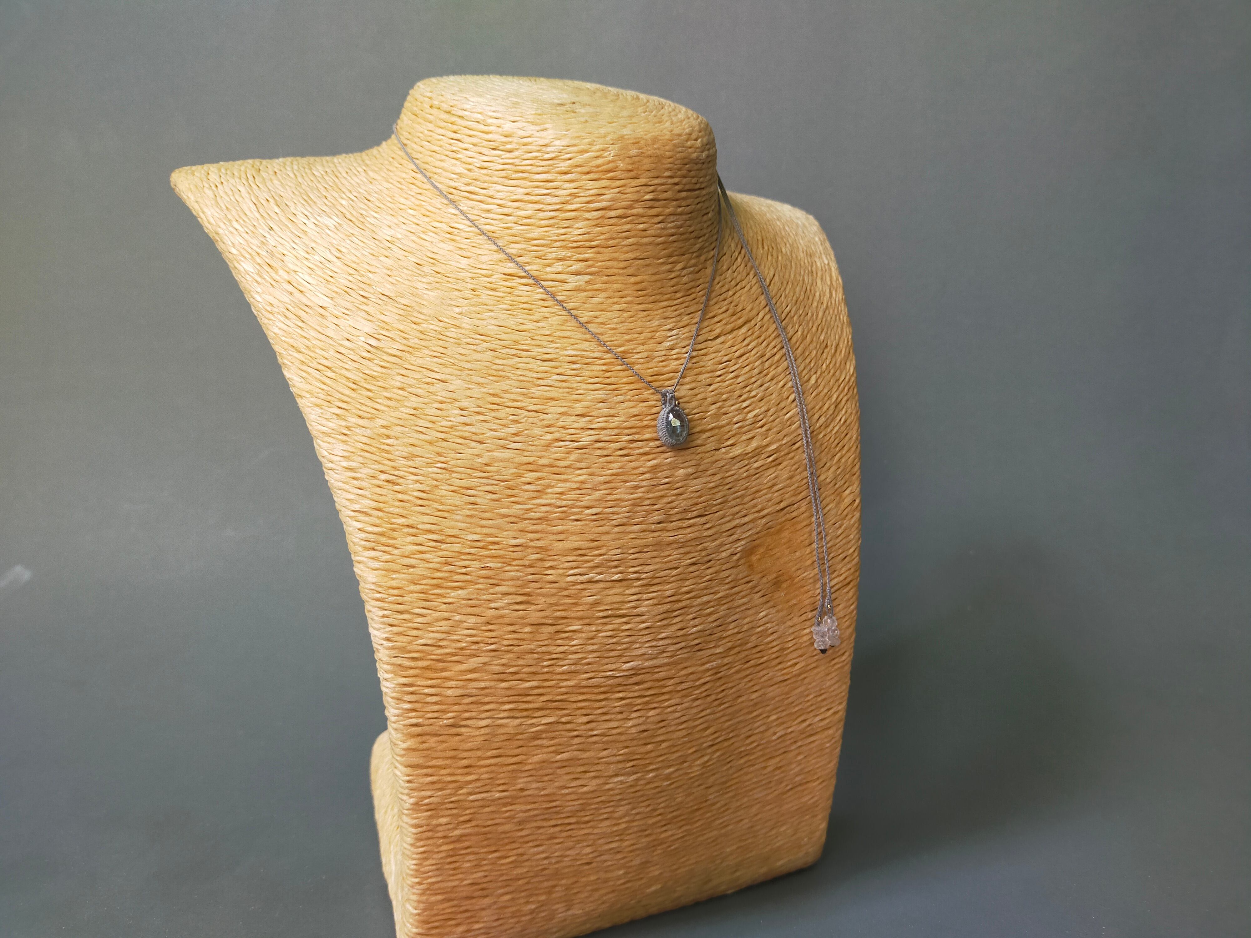 お客様の要望で誕生石のネックレスを作りました。シンプルな仕上がりになっています。