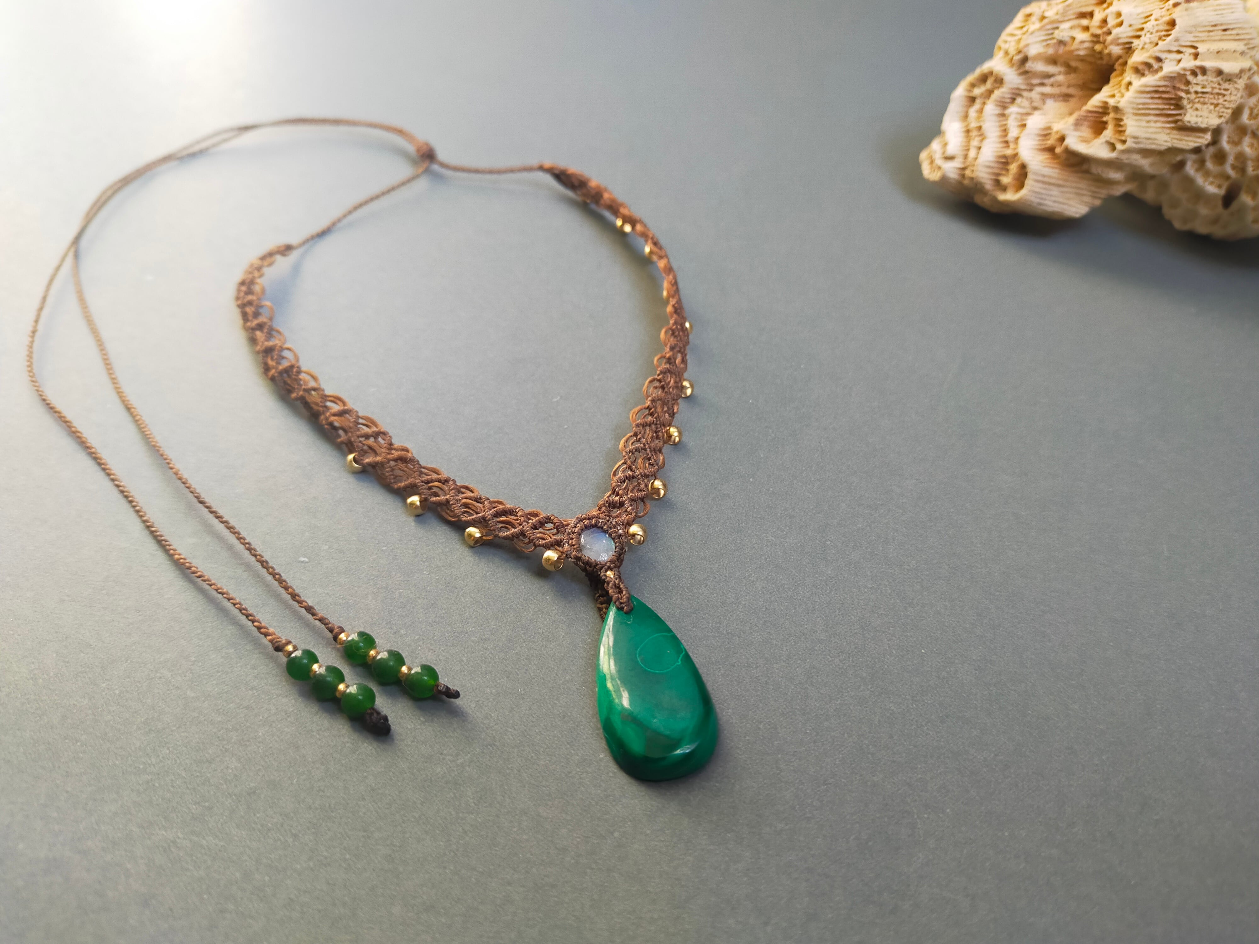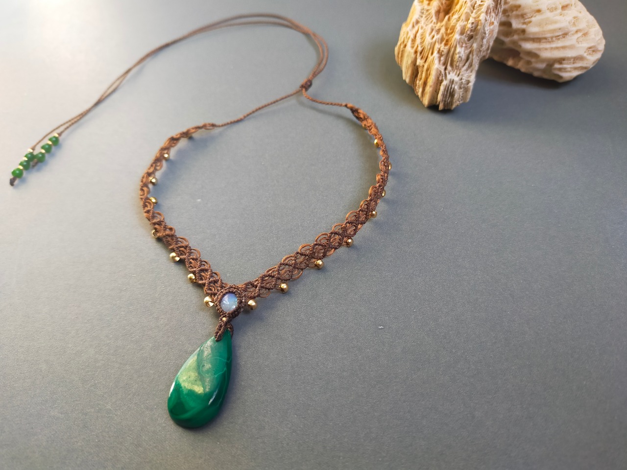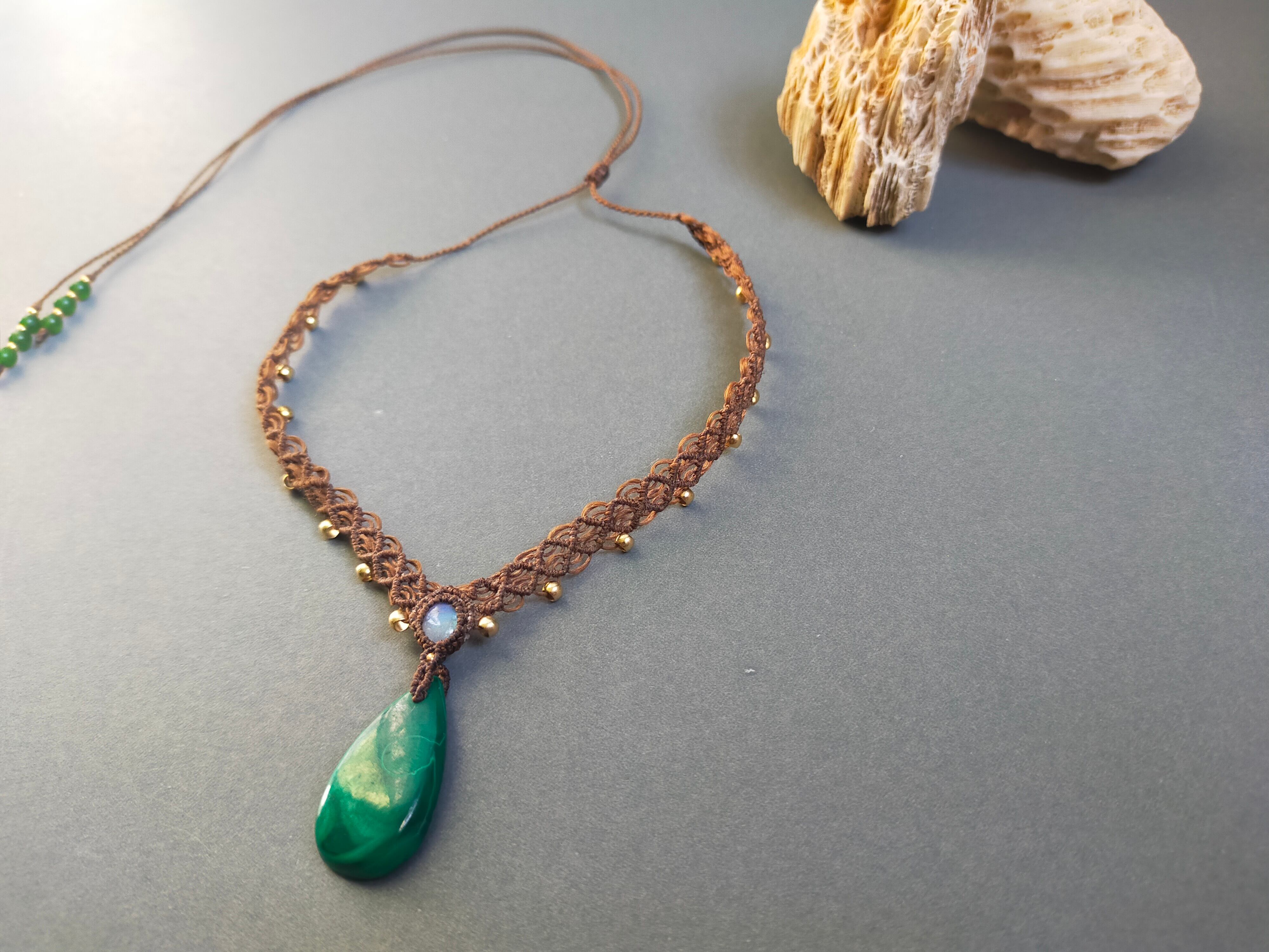 新作マラカイト with レインボームーンストーンチョーカーを制作しました。