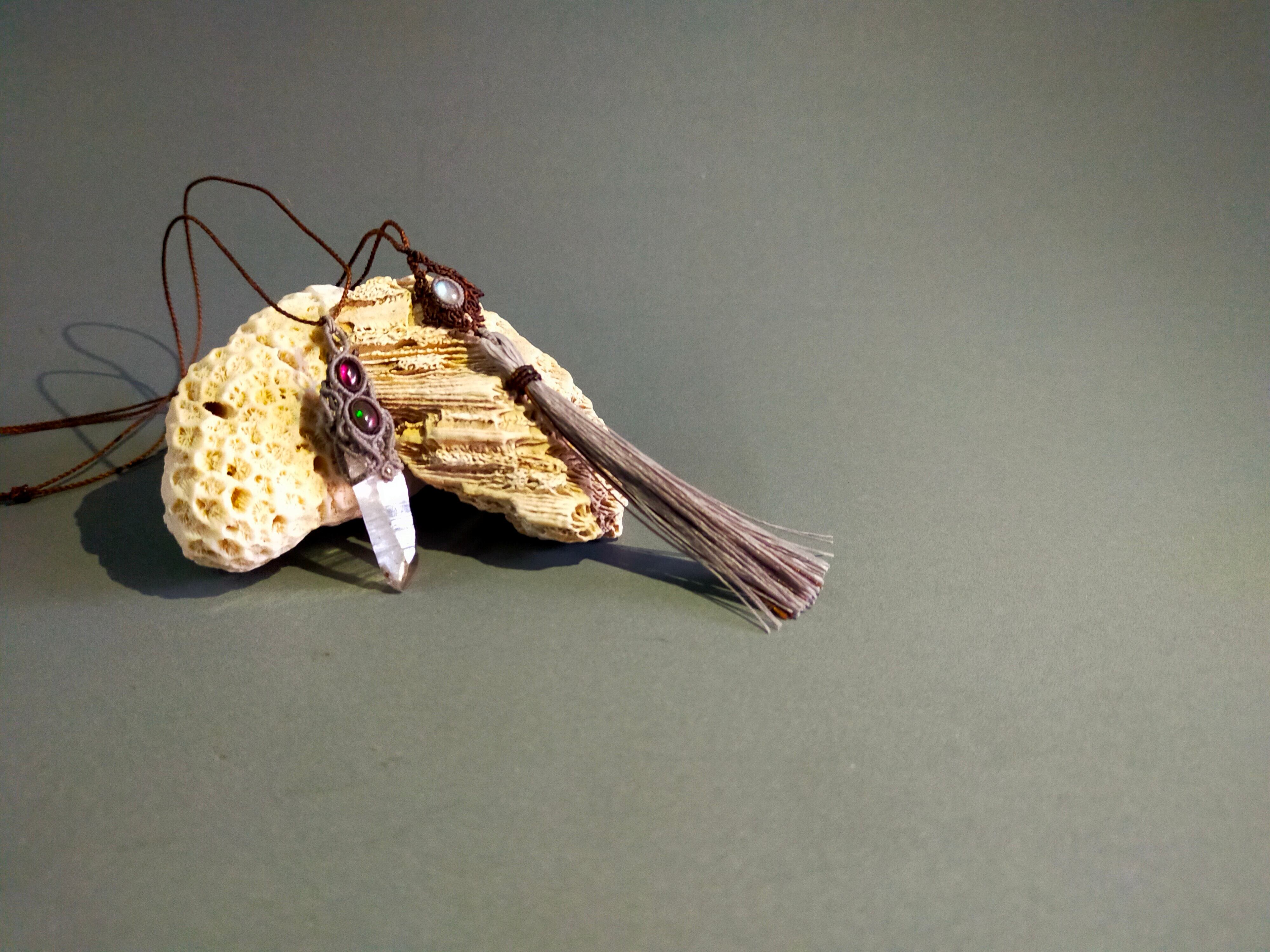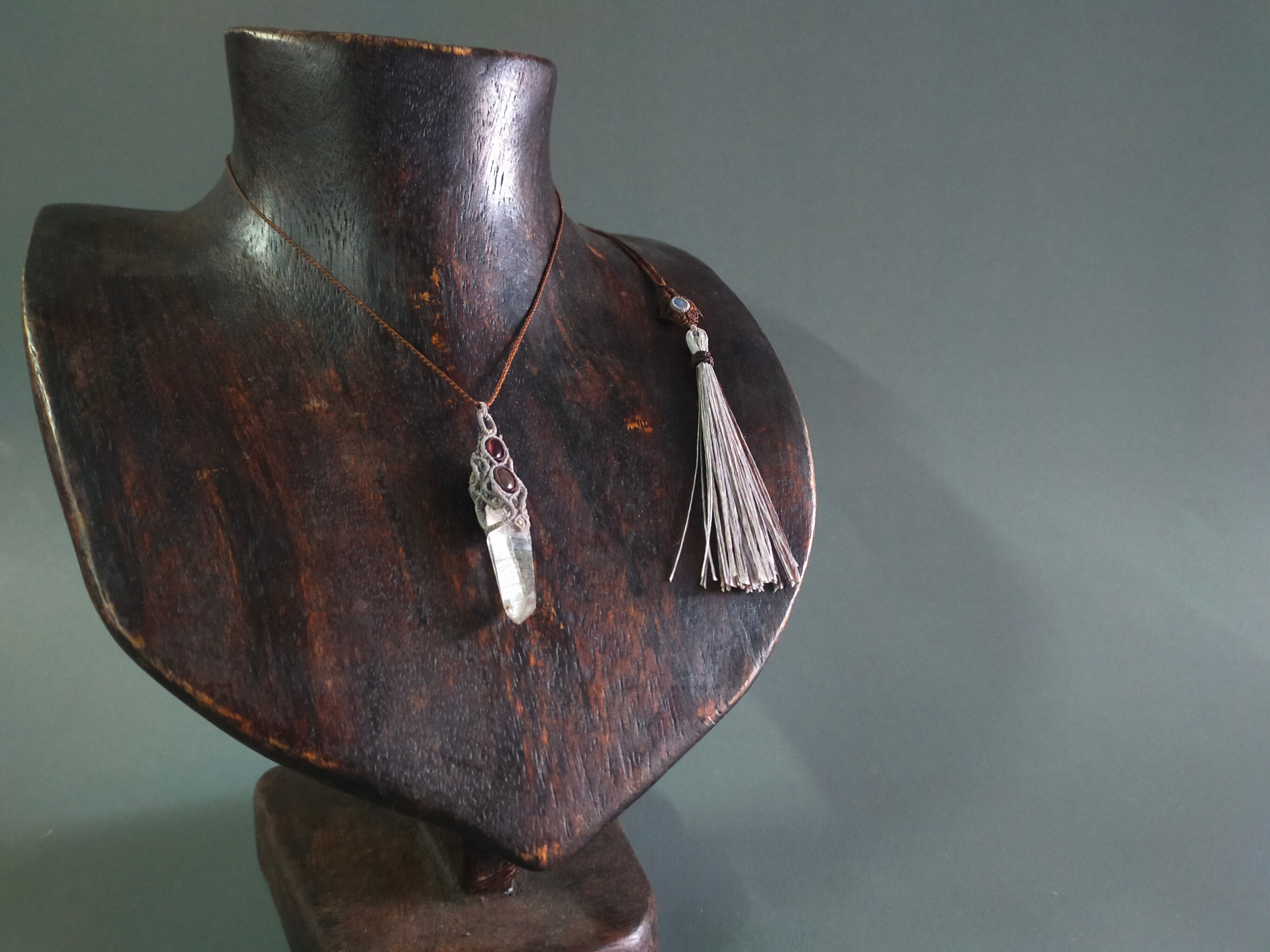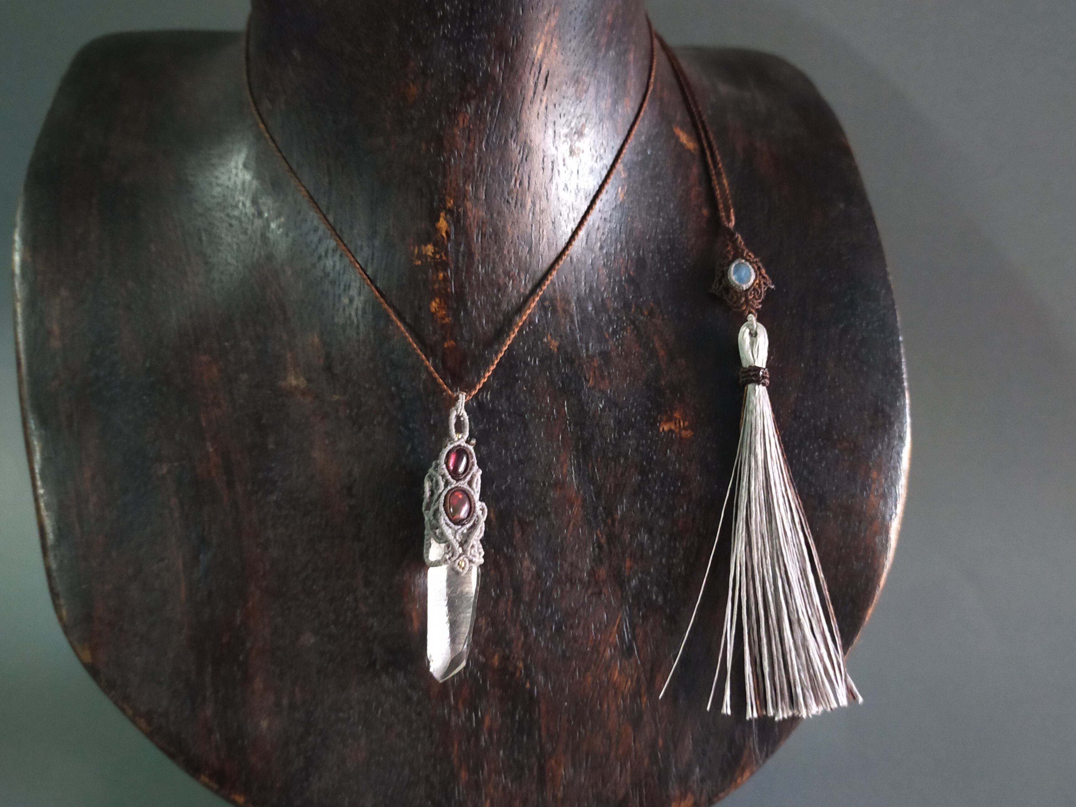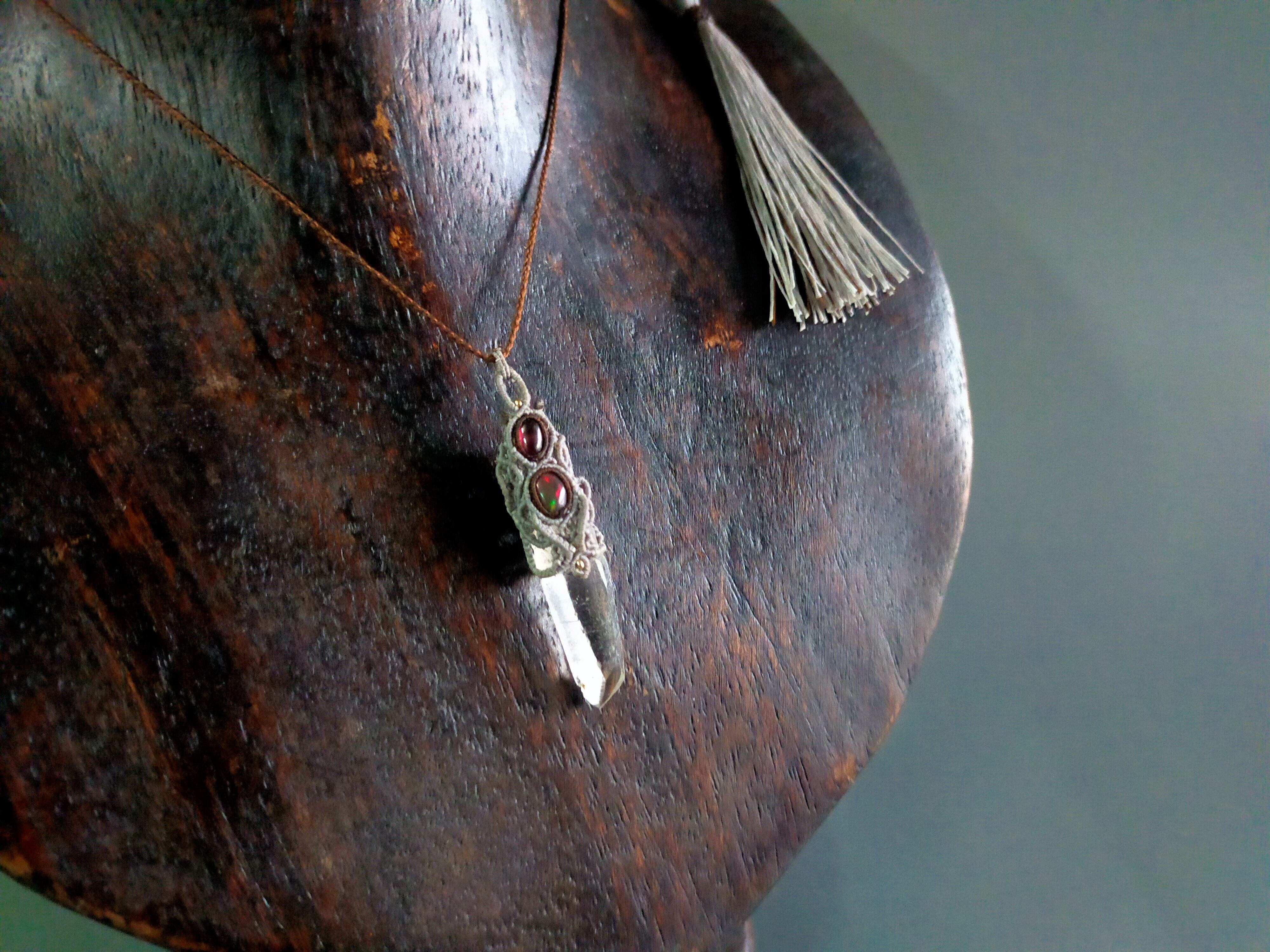 天然のクリスタル石にブラックオパールとガーネットを使った新作ネックレスです。