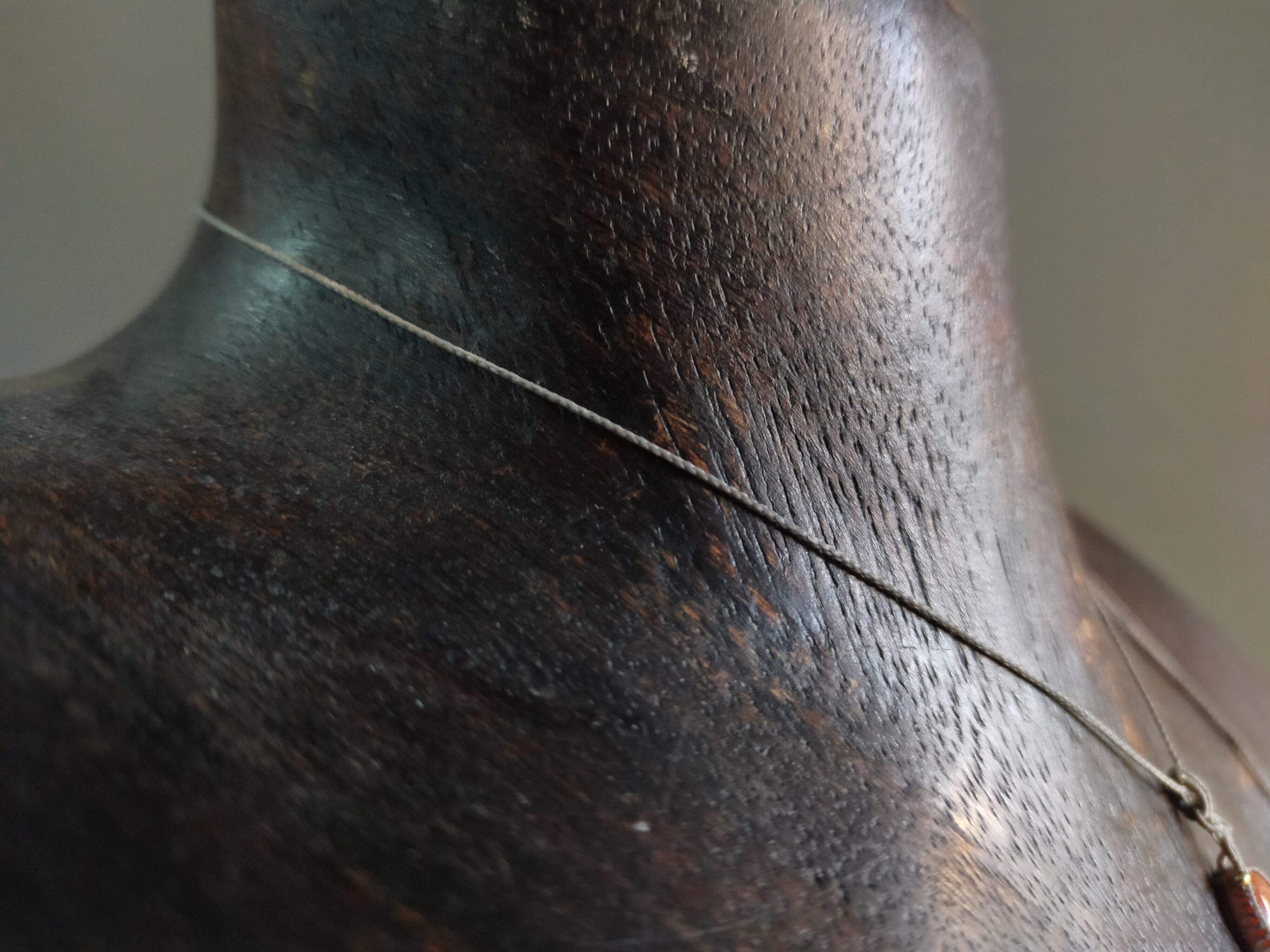 ☆0.20mmのワックスコードを2つにさいて使用していますので、一本あたり超極細の0.10mmになっております。紐部分は、4つ編みで編んでおります。