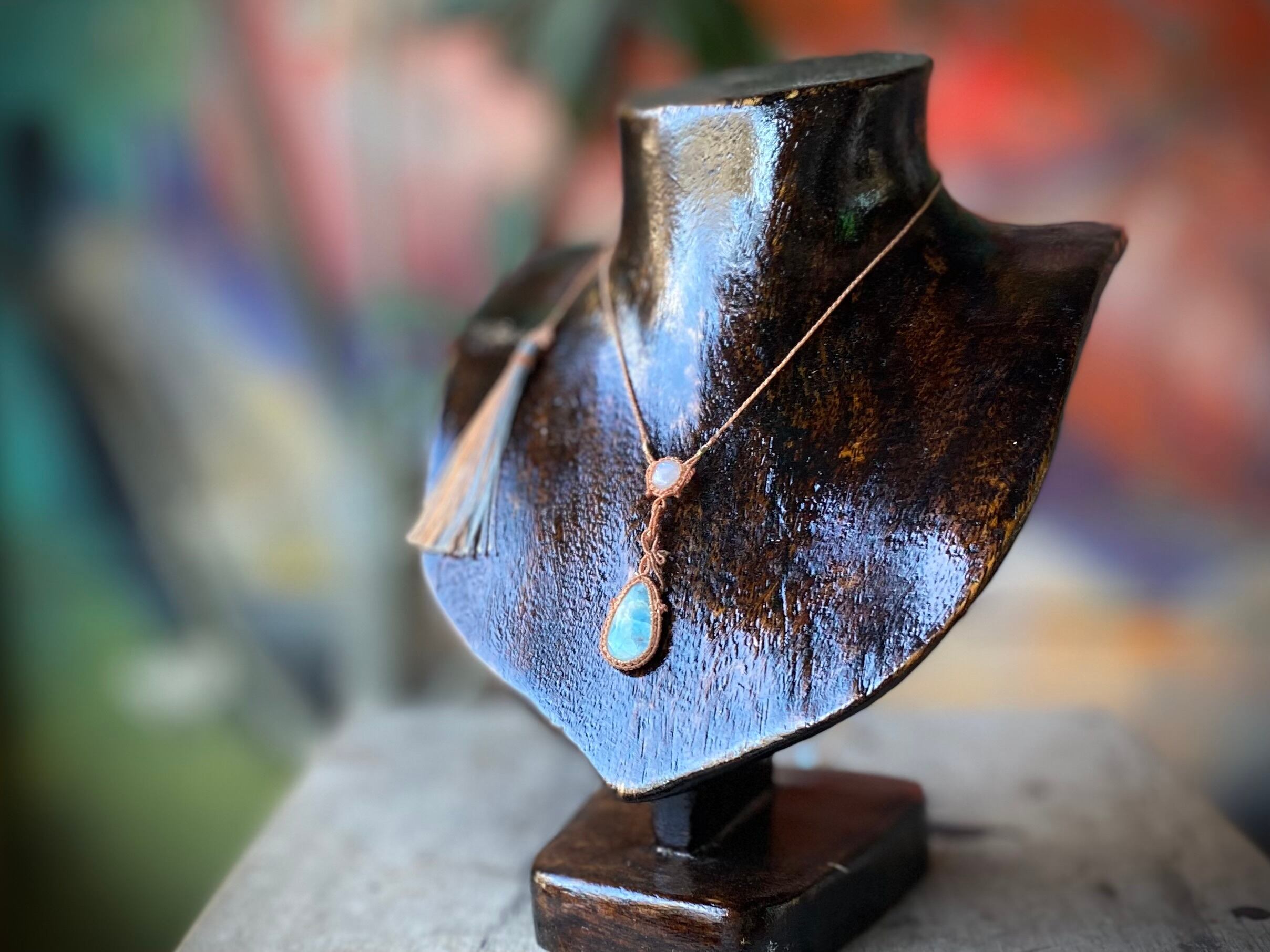 ラリマー石とレインボームーンストーンを使った新作ネックレスです。