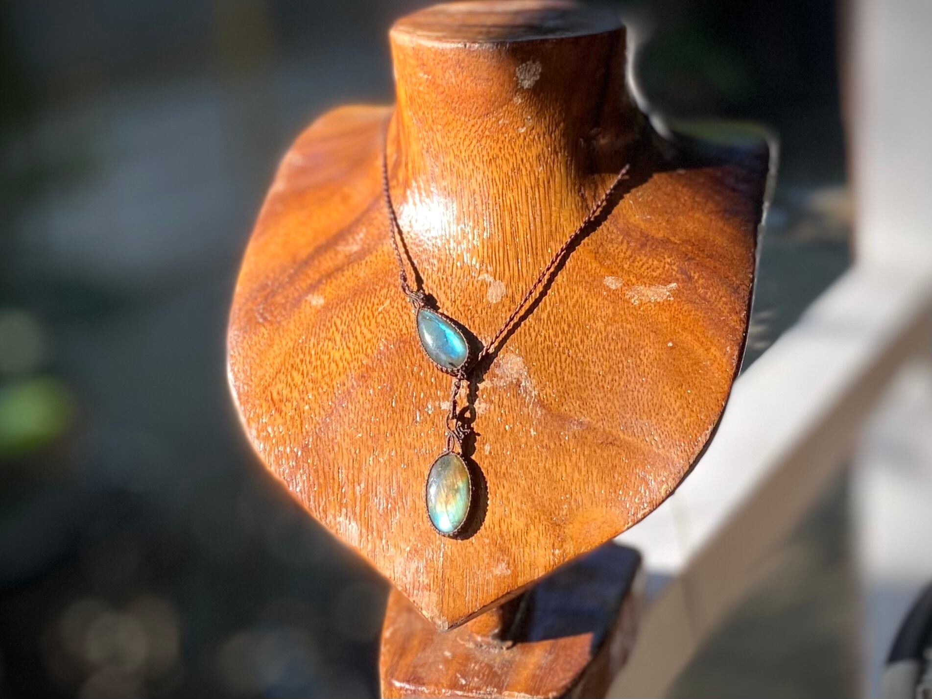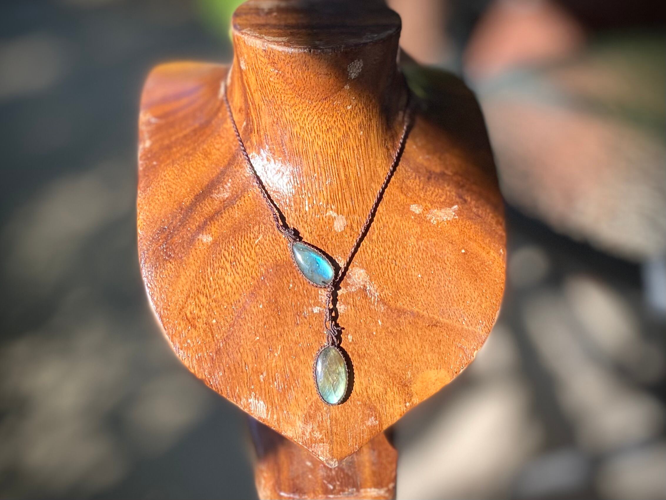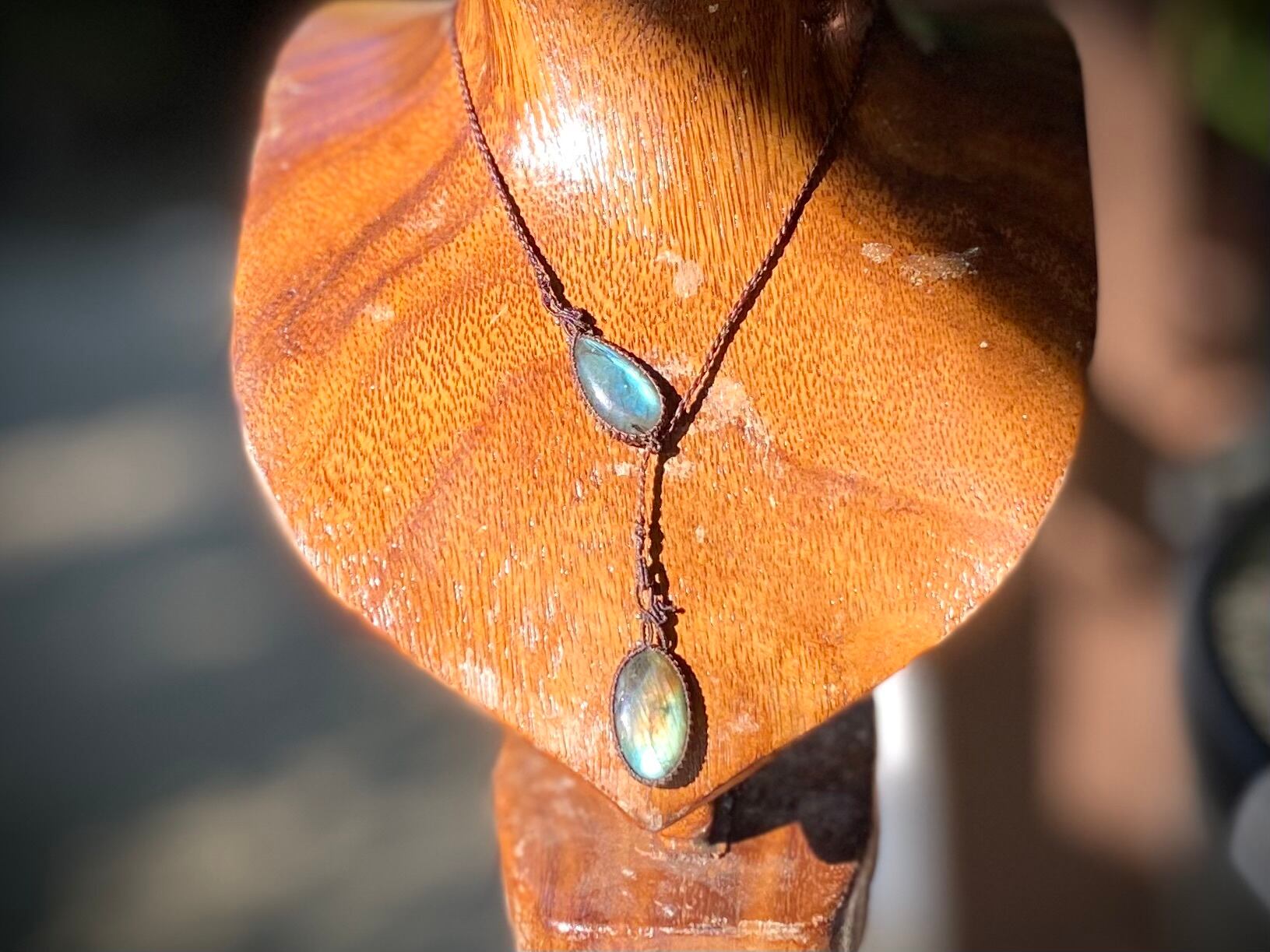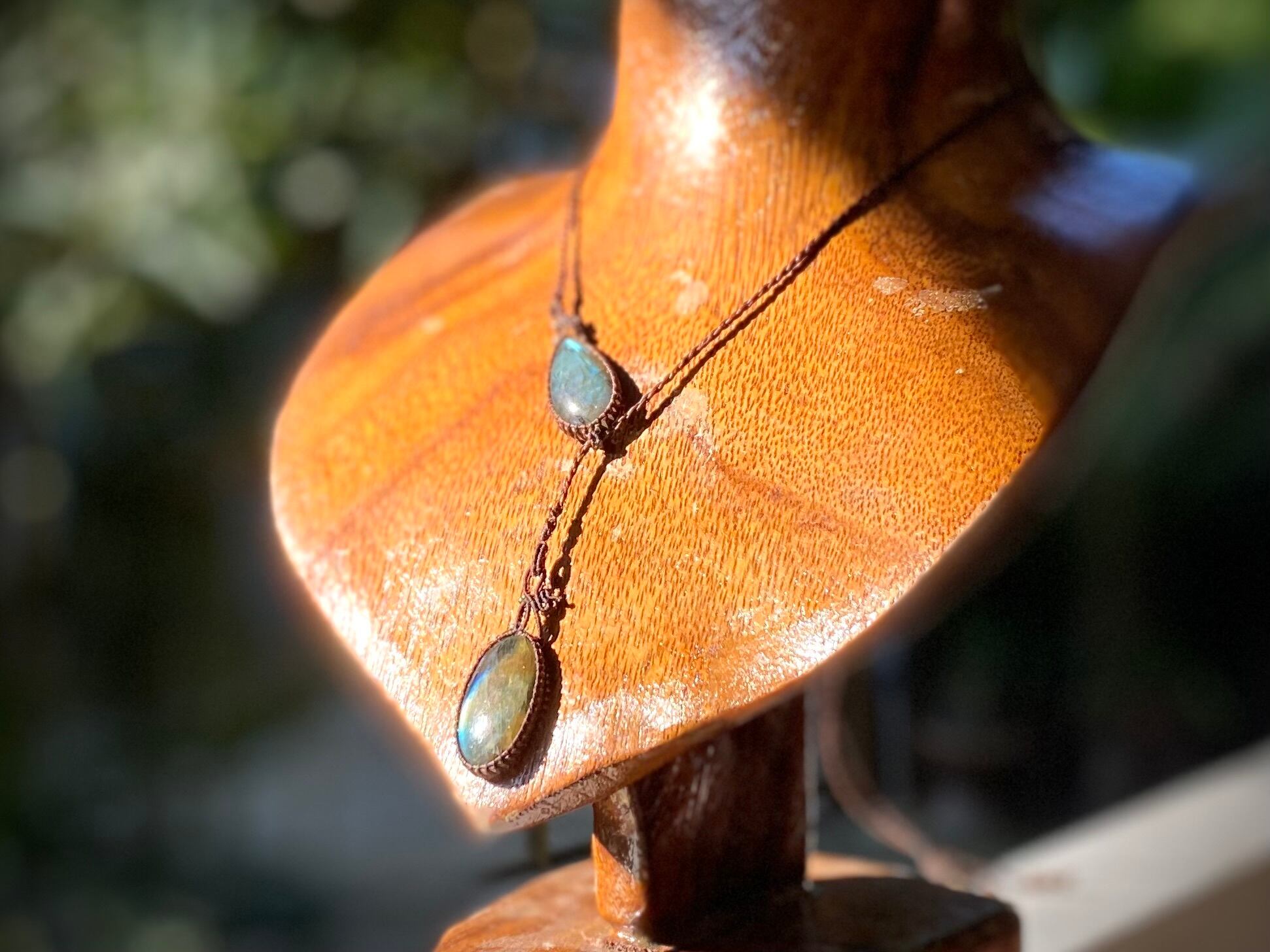 2つの大粒ラブラドライトを使った新作ネックレスです。